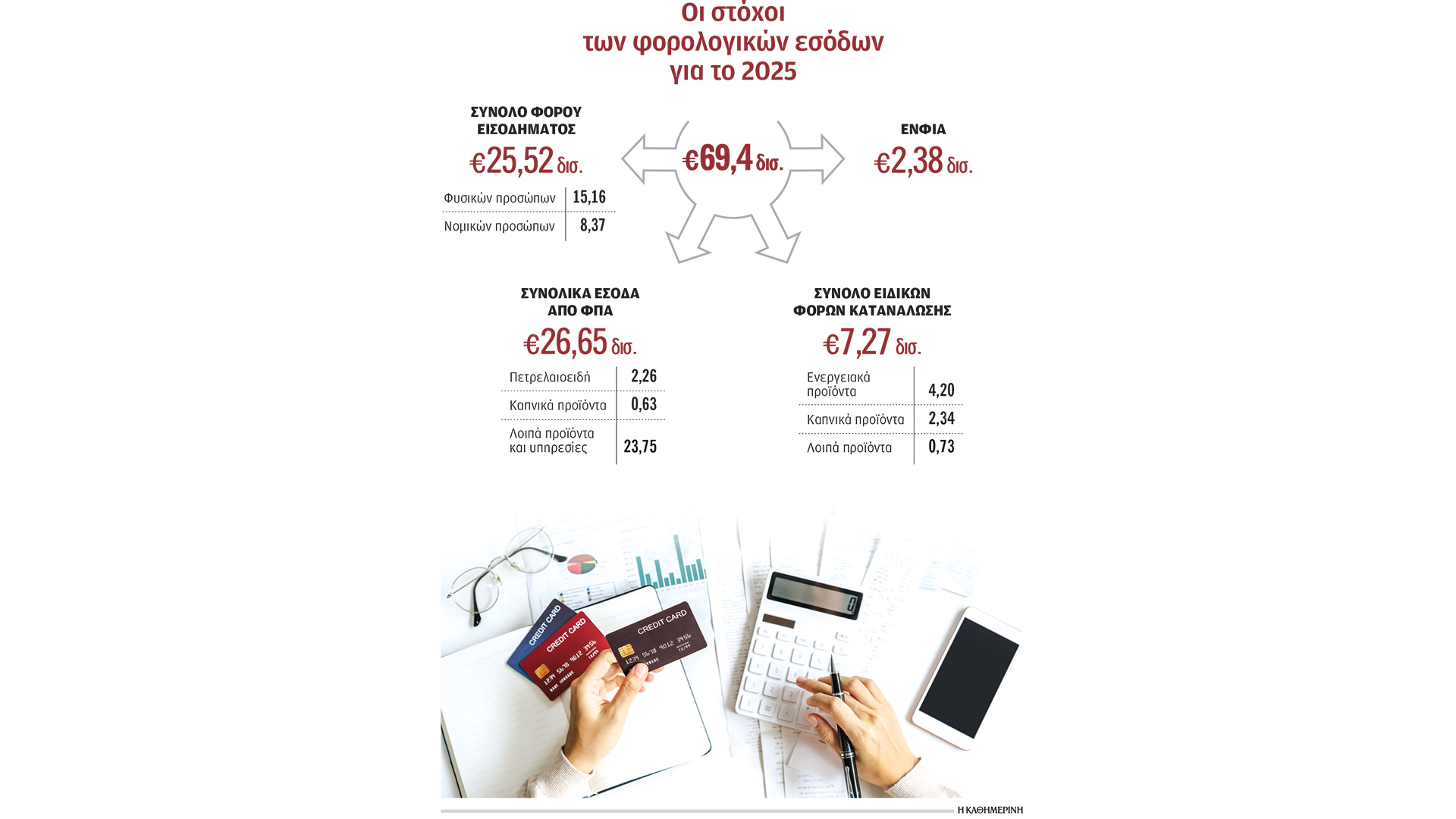 Μόνο από τον ΦΠΑ, έχει προγραμματιστεί να εισπραχθούν εντός του 2025 περίπου 26,6 δισ. ευρώ, ποσό που αποτελεί και ιστορικό ρεκόρ για τον συγκεκριμένο κωδικό.