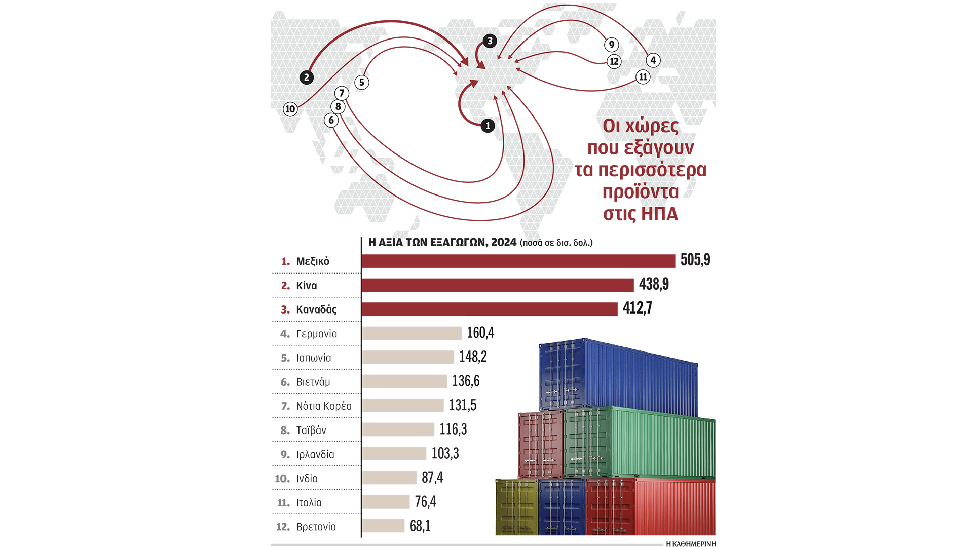 δισ. δολ. ήταν το 2024 το εμπορικό έλλειμμα των ΗΠΑ με την Ε.Ε., έχοντας σημειώσει αύξηση 12,9% σε σύγκριση με το 2023.