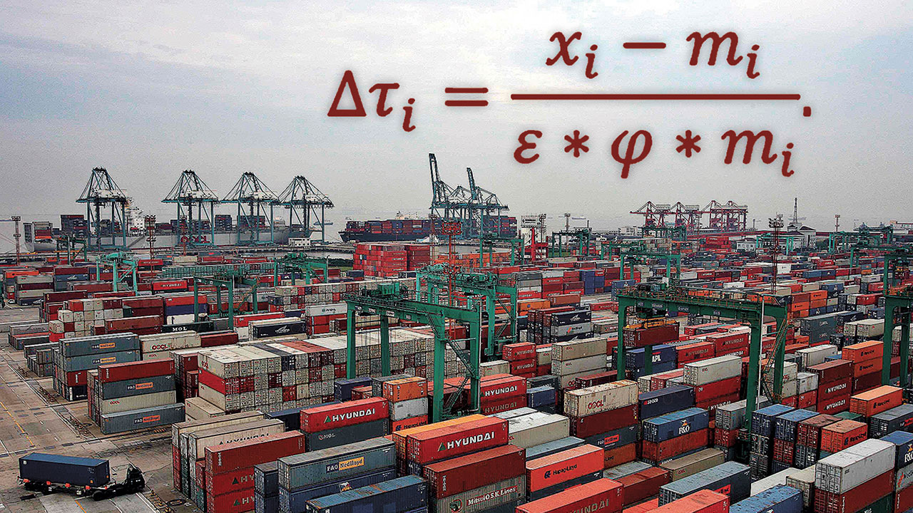 Στο μεταξύ, το Γραφείο του Εμπορικού Αντιπροσώπου των ΗΠΑ έκανε γνωστή τη φόρμουλα που χρησιμοποιήθηκε για τον υπολογισμό των «ανταποδοτικών» δασμών της κυβέρνησης Τραμπ (βλ. φωτογραφία). «Κατανοήστε ένα περιβάλλον στο οποίο οι ΗΠΑ επιβάλλουν έναν δασμό με συντελεστή τ_i στη χώρα i και το Δτ_i αντικατοπτρίζει τη μεταβολή του δασμολογικού συντελεστή. Εστω ε0 η μετάβαση από τους δασμούς στις τιμές εισαγωγής, έστω m_i>0 οι συνολικές εισαγωγές από τη χώρα i και έστω x_i>0 οι συνολικές εξαγωγές. Τότε, η μείωση των εισαγωγών λόγω μεταβολής των δασμών ισούται με Δτ_i*ε*φ*m_i. Υποθέτοντας ότι τα αποτελέσματα αντιστάθμισης της συναλλαγματικής ισοτιμίας και της γενικής ισορροπίας είναι αρκετά μικρά ώστε να μπορούν να αγνοηθούν, ο αμοιβαίος δασμός που οδηγεί ένα διμερές εμπορικό ισοζύγιο στο μηδέν ικανοποιείται ως εξής», αναφέρουν χαρακτηριστικά οι τεχνοκράτες της αμερικανικής κυβέρνησης, προλογίζοντας τον τύπο που δημιούργησαν για τον υπολογισμό των δασμών.