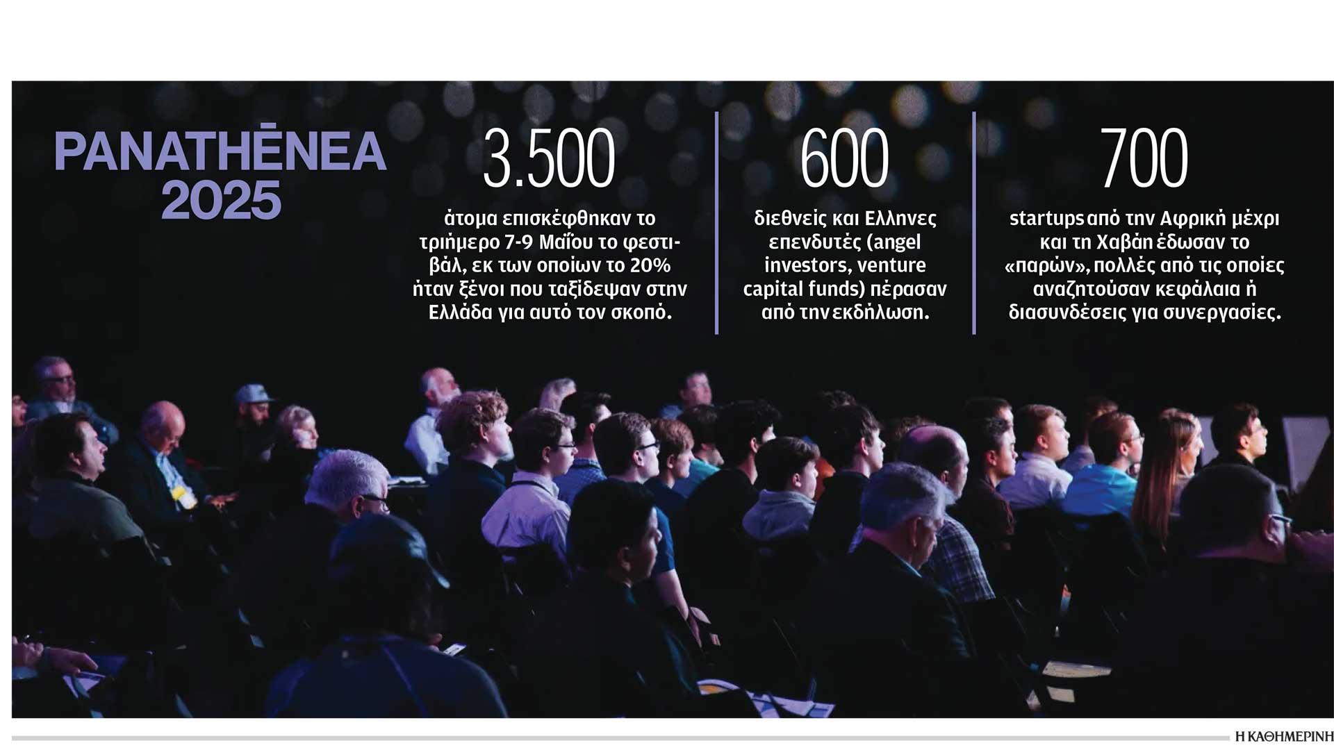 Στον προαύλιο χώρο του Ωδείου Αθηνών κατά τις μεσημεριανές ώρες η ροή του κόσμου ήταν αυξημένη, ενώ πάνω από 100 εθελοντές –κατά βάση φοιτητές ελληνικών πανεπιστημίων– έχουν επιστρατευθεί για να συμβάλουν στο στήσιμο της διοργάνωσης. Παρουσία έδωσαν, σύμφωνα με εκτιμήσεις, πάνω από 600 διεθνείς και Ελληνες επενδυτές (angel investors, venture capital funds), καθώς και περισσότερες από 600-700 νεοφυείς επιχειρήσεις, πολλές εκ των οποίων αναζητούσαν κεφάλαια ή διασυνδέσεις για συνεργασίες.