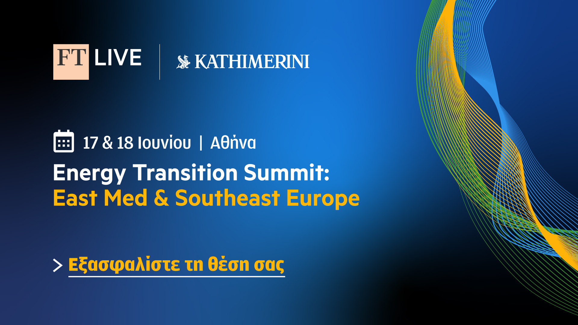Οι προκλήσεις και οι ευκαιρίες που προκύπτουν στην πορεία της Ανατολικής Μεσογείου και της Νοτιοανατολικής Ευρώπης προς ένα βιώσιμο ενεργειακό μέλλον, θα βρεθούν στο επίκεντρο του κορυφαίου συνεδρίου των Financial Times για την ενεργειακή μετάβαση, που έρχεται για πρώτη φορά στην Ελλάδα, στις 17 και 18 Ιουνίου, στο Four Seasons Astir Palace, σε συνεργασία με την Καθημερινή.