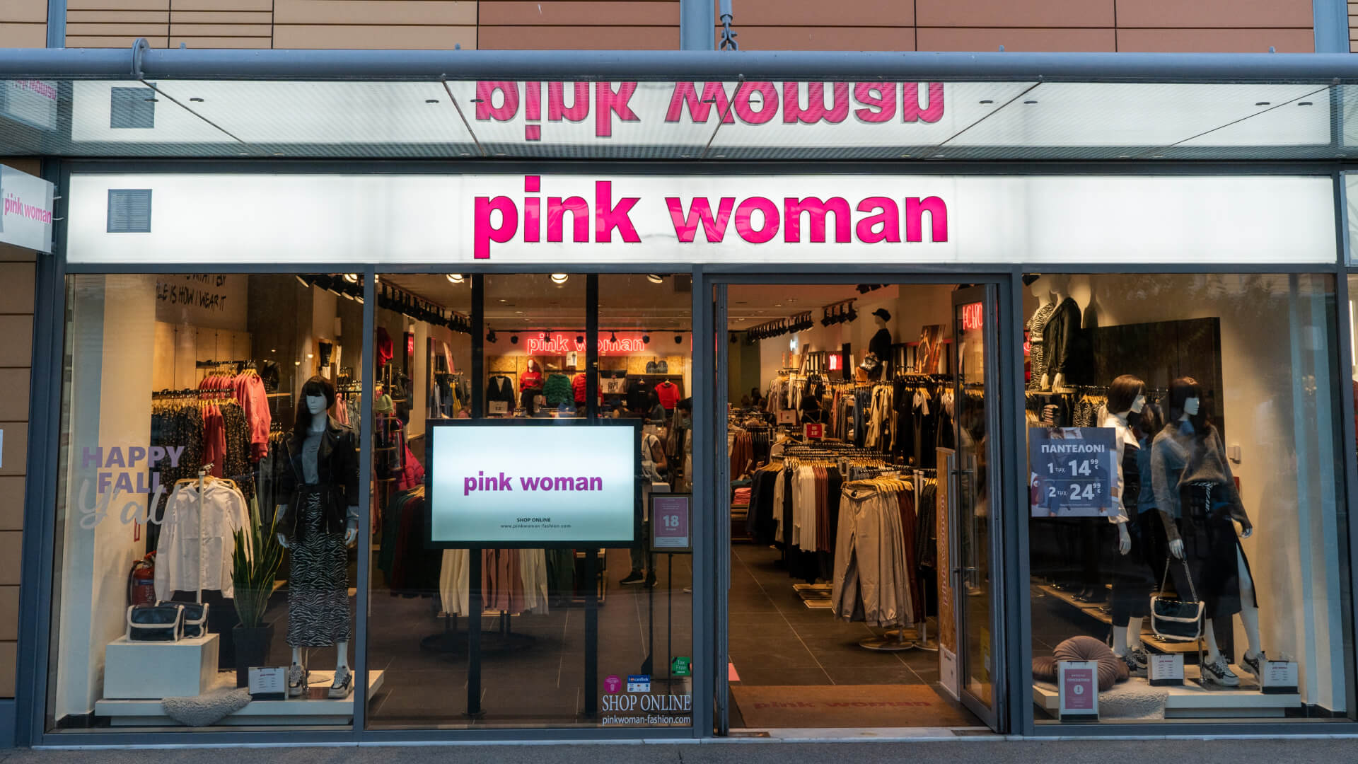 Στην Ελλάδα σήμερα λειτουργούν 116 καταστήματα με το σήμα «Pink Woman», καθιστώντας το σήμα με τα περισσότερα σημεία πώλησης στην εν λόγω κατηγορία, εκ των οποίων τα 65 είναι εταιρικά και τα 51 με μοντέλο δικαιόχρησης (franchising).