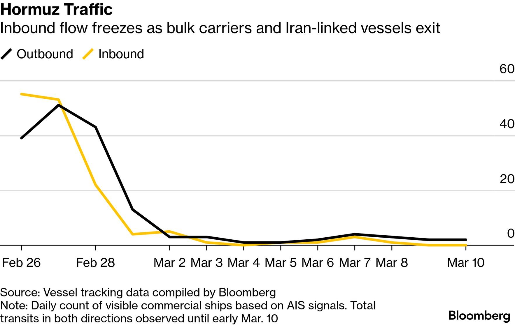 Λόγω της κρίσης στη Μέση Ανατολή, την οποία πυροδότησαν τα αμερικανοϊσραηλινά πλήγματα στο Ιράν, έχουν ελαχιστοποιηθεί οι διελεύσεις πλοίων από το Στενό του Χορμούζ, από όπου διέρχεται υπό κανονικές συνθήκες το 20% του πετρελαίου και του υγροποιημένου φυσικού αερίου που διακινείται διά θαλάσσης σε παγκόσμια κλίμακα.