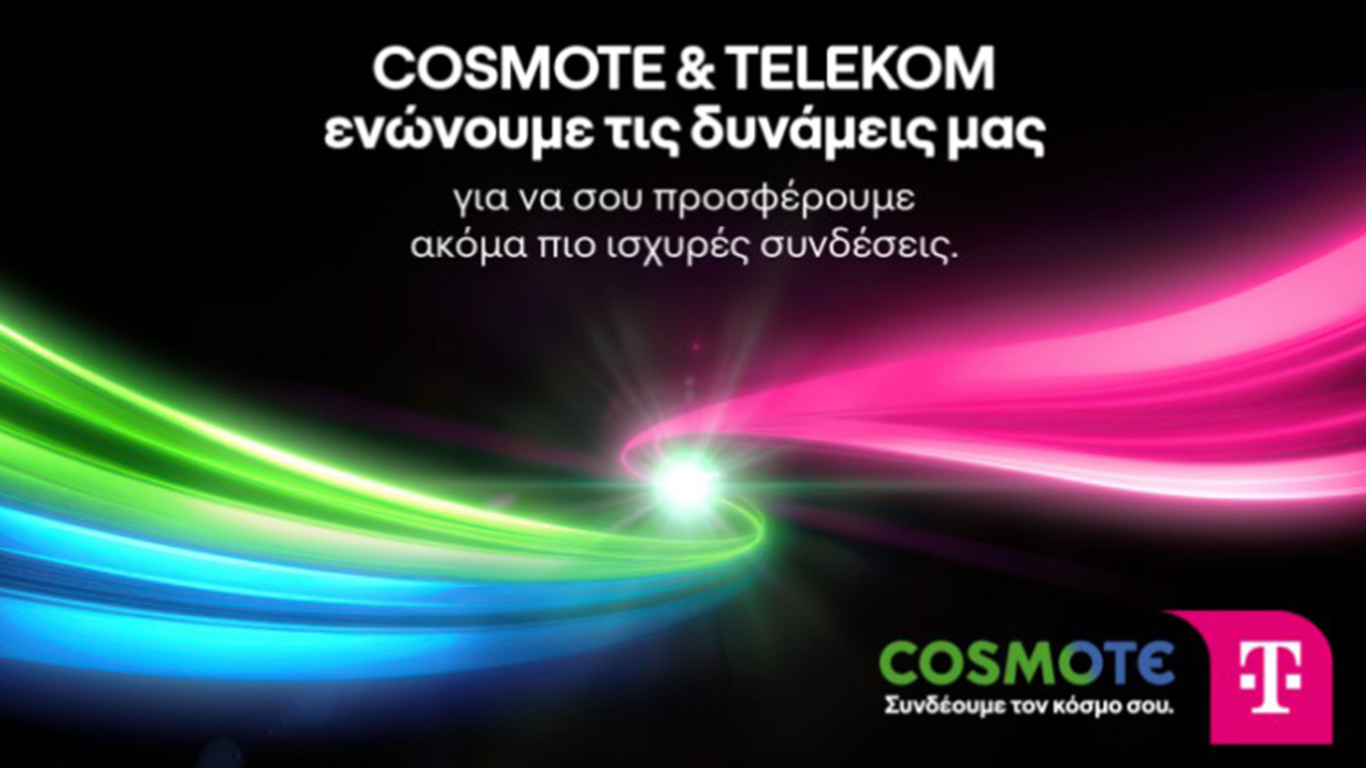 Η COSMOTE ανακοίνωσε ότι ενώνει τις δυνάμεις της με την TELEKOM και μαζί δημιουργούν την COSMOTE TELEKOM. Οπως αναφέρεται σε σχετική ανακοίνωση, με την τεχνογνωσία και την καινοτομία της TELEKOM, η COSMOTE ενισχύει την υπόσχεσή της να προσφέρει ακόμα πιο προηγμένες, αξιόπιστες και ανταγωνιστικές υπηρεσίες, που θα βελτιώσουν την καθημερινότητα ιδιωτών και επιχειρήσεων, και θα ενισχύσουν τις προοπτικές ανάπτυξης της χώρας.