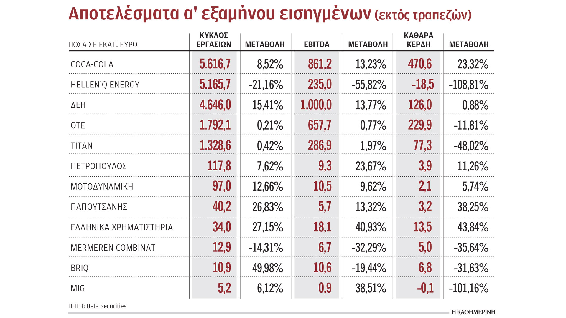 Η σημαντική επίδραση της HELLENiQ ENERGY στο δείγμα –καθώς το εξάμηνο τόσο στα λειτουργικά όσο και στα καθαρά κέρδη έχει επηρεαστεί από σημαντικές ζημίες απομείωσης αποθεμάτων ύψους 172 εκατ. ευρώ– δεν βοηθάει στο να εξαχθούν ασφαλή συμπεράσματα για την τάση της περιόδου, ενώ σημαντικό ρόλο έπαιξε και η κάμψη κερδών σε ΤΙΤΑΝ και OTE.
