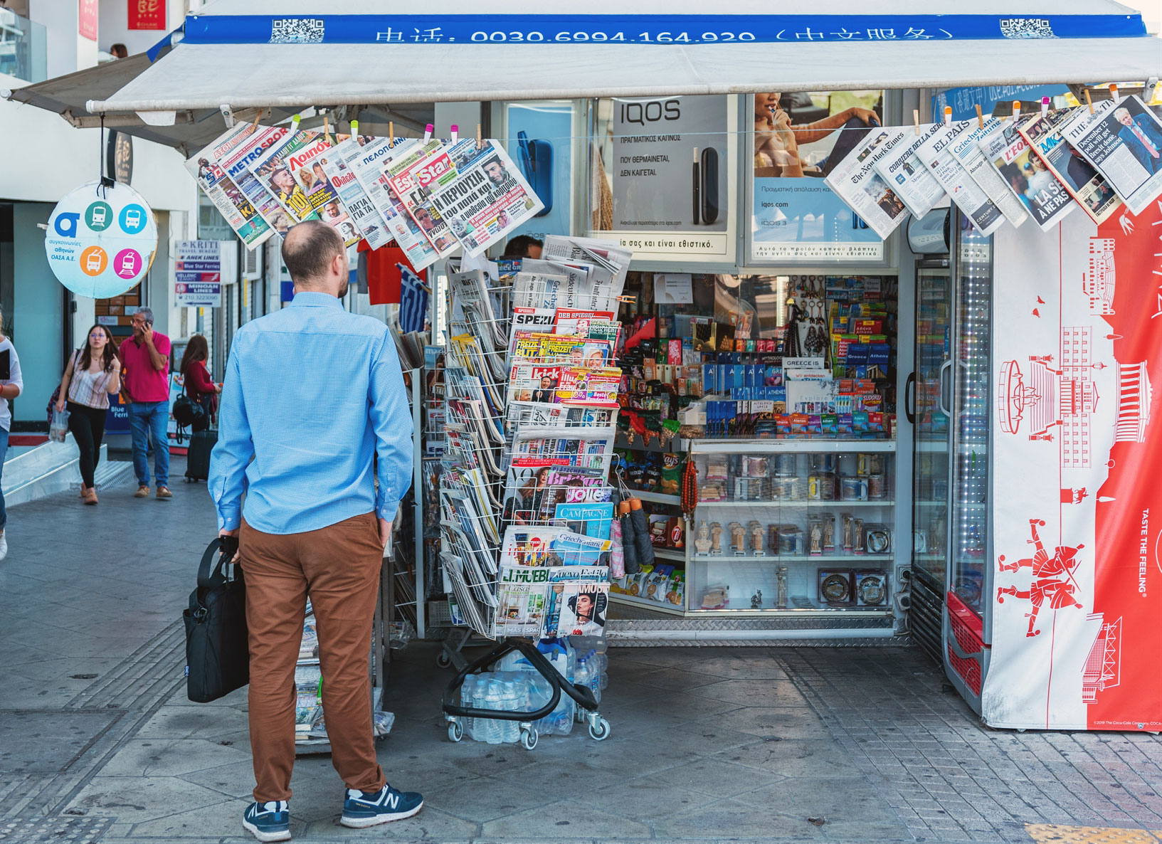 Ηταν η εποχή που ακόμη στην Ελλάδα υπολογίζεται ότι υπήρχαν πάνω από 11.000 περίπτερα, αριθμός ο οποίος μετά την οικονομική κρίση άρχισε να υποχωρεί δραματικά, με το τελειωτικό χτύπημα να επιφέρει η πανδημία. Σύμφωνα με στοιχεία της NielsenIQ, ενώ το 2008 λειτουργούσαν 9.837 περίπτερα, το 2016 ο αριθμός τους είχε μειωθεί κατά σχεδόν 40%, φτάνοντας στις 6.008, απόρροια της οικονομικής κρίσης. Είναι η εποχή που οι καταναλωτές περιορίζουν τις αυθόρμητες αγορές, αγοράζουν λόγω μεγαλύτερης φορολογίας λιγότερα τσιγάρα ή προμηθεύονται λαθραία προϊόντα από πλανόδιους πωλητές, ενώ και ο Τύπος γνωρίζει μεγάλη ύφεση με τα «λουκέτα» στις εφημερίδες να είναι διαδοχικά. Δεν είναι τυχαίο ότι το 2015 κυκλοφορεί ένα άλλο τραγούδι, «Το περίπτερο» του Φοίβου Δεληβοριά, που αναφέρεται σε ένα περίπτερο που δεν υπάρχει πια, αλλά είναι «τρύπα στα μισά του δρόμου».