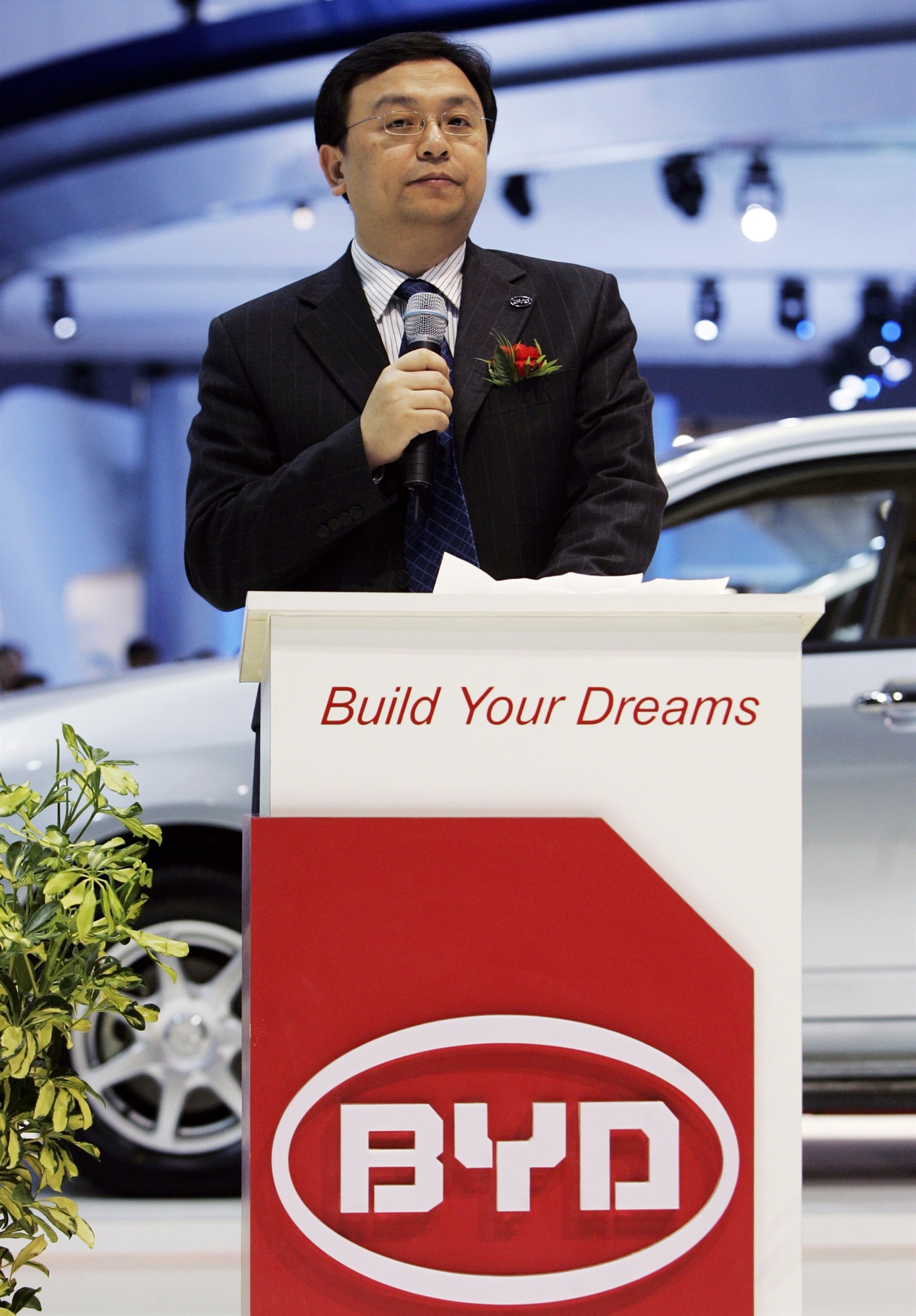 Το 2008, η BYD παρουσίασε τα πρώτα της υβριδικά και ηλεκτρικά μοντέλα, αφού ο Ουάνγκ πίστευε ότι οι μπαταρίες έχουν μεγάλες προοπτικές πέραν των κινητών τηλεφώνων. Ομως, πολλοί μέτοχοι δεν πίστεψαν στο όραμά του, με αποτέλεσμα η μετοχή της εταιρείας να χάσει σχεδόν το ένα τρίτο της αξίας της.