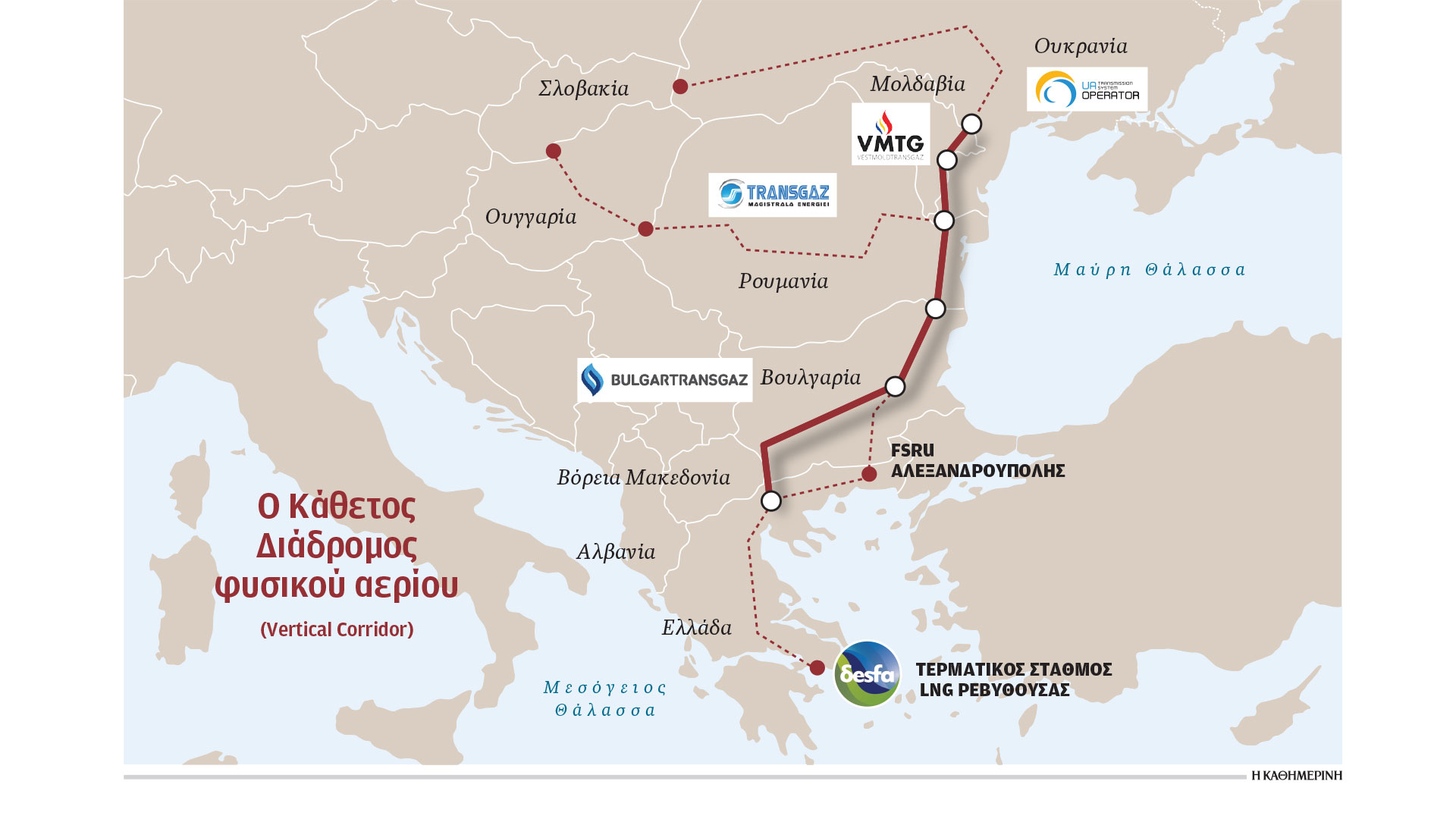 Η γεωγραφική εγγύτητα αυτών των χωρών με την Ουκρανία σε συνδυασμό με το μείγμα αερίου που διαθέτουν διαμορφώνουν μια τιμή πολύ χαμηλότερη από το κόστος για τη μεταφορά αερίου από τους τερματικούς σταθμούς της Ελλάδας μέσω του Κάθετου Διαδρόμου, σύμφωνα με την αγορά πάνω από 5 ευρώ/μεγαβατώρα.