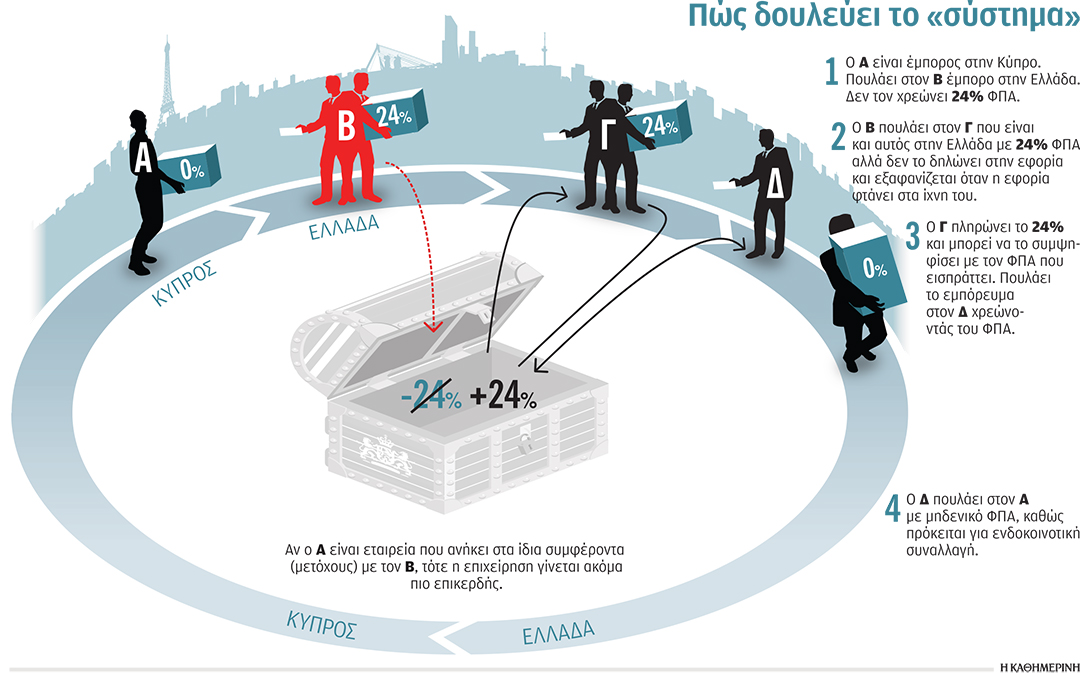Τους τελευταίους μήνες η «Κ» συμμετείχε σε μια πανευρωπαϊκή έρευνα που συντόνισε η γερμανική δημοσιογραφική ομάδα CORRECTIV με θέμα την κλοπή του ΦΠΑ στις ενδοκοινοτικές συναλλαγές με τη μέθοδο του «εξαφανισμένου εμπόρου», γνωστή και ως απάτη τύπου «καρουζέλ». Η έρευνα έχει τίτλο «Ευρώπη, η μεγάλη κλοπή» ή «Grand Theft Europe» και σε αυτή συμμετείχαν 63 δημοσιογράφοι από 35 δημοσιογραφικούς οργανισμούς όλων των κρατών-μελών, τη Νορβηγία και την Ελβετία. Το πρώτο σκέλος της δημοσιοποιήθηκε την Τρίτη και όπως επισημάνθηκε, η κλοπή του ΦΠΑ στα 27 κράτη-μέλη με αυτή τη μέθοδο υπολογίστηκε στο ιλιγγιώδες ποσό των 50 δισ. ευρώ τον χρόνο. Στην Ελλάδα, τη χώρα με τη δεύτερη μεγαλύτερη φοροδιαφυγή την Ε.Ε., μετά τη Ρουμανία, η απώλεια ΦΠΑ υπολογίζεται σε 5,5 δισ. τον χρόνο.