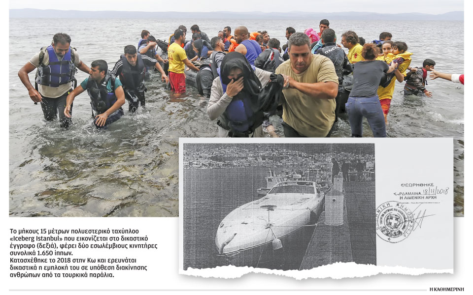 Δύο Σύροι εκ των διακινουμένων είπαν στους λιμενικούς ότι είχαν πληρώσει 1.800 ευρώ έκαστος για το ταξίδι. Οπως ανέφεραν, όλες οι συνεννοήσεις τους έγιναν με έναν συμπατριώτη τους στην Αλικαρνασσό της Τουρκίας. Τη νύχτα πριν από τον απόπλου τους μετέφεραν με ένα βανάκι σε άλλο σπίτι εκτός της πόλης. Από εκεί τους παρέλαβε ένα κλειστό φορτηγό. Πέρασαν τρεις ώρες στον δρόμο μέχρι να προσεγγίσουν το σημείο όπου τους περίμενε το σκάφος. «Μας είπαν να τρέξουμε προς τη θάλασσα και μας έβαλαν στο κάτω μέρος, μέσα στην καμπίνα. Ηταν να φορτώσουν έξι άτομα αλλά τελικά μπήκαμε περίπου 30. Ημασταν περίπου δύο ώρες στο νερό», είπε στους λιμενικούς ένας εκ των Σύρων, ο οποίος αναγνώρισε σε φωτογραφία το «Iceberg Istanbul» ως το σκάφος της διακίνησής του.