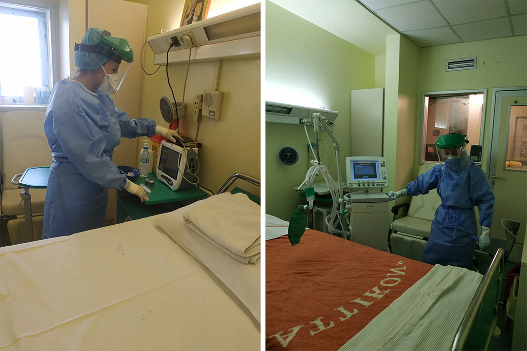 Η διαχείριση των ασθενών με COVID-19 είναι σύνθετη υπόθεση. «Όταν χρειάστηκε να φέρουν στο δωμάτιο ένα μηχάνημα για υπερηχογράφημα έπρεπε μετά να το αποστειρώσουν από πάνω μέχρι κάτω», λέει η κ. Τζούρου.