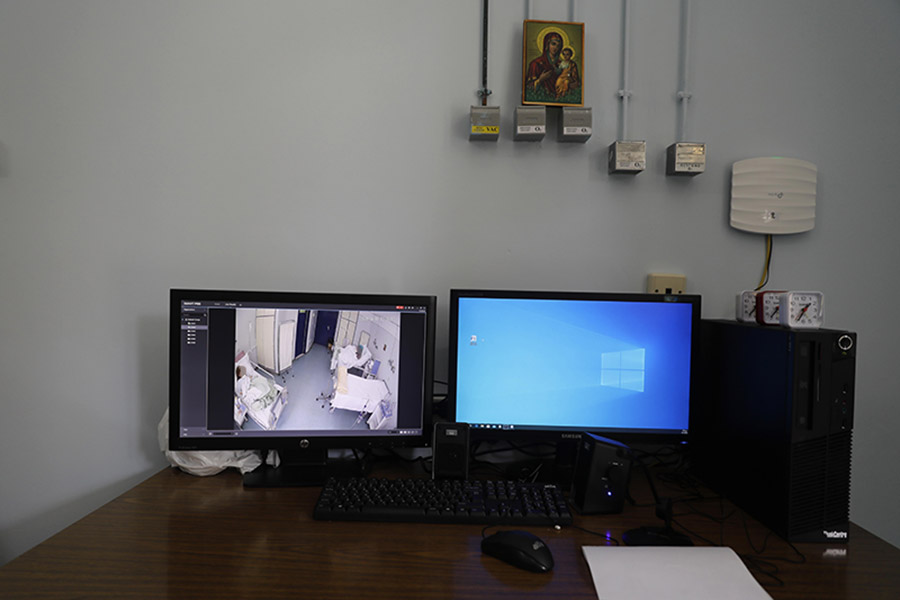 Στα δωμάτια μπήκαν κάμερες, με τη συγκατάθεση των ασθενών. Οι οθόνες παρακολούθησης βρίσκονται στην «πράσινη ζώνη», στο γραφείο των γιατρών. Μπορούν και να συνομιλήσουν με τους νοσηλευομένους μέσω συστήματος ενδοεπικοινωνίας. Στόχος είναι στο μέλλον αυτός ο εξοπλισμός να χρησιμεύσει και σε πιθανό επισκεπτήριο, καθώς αυτή τη στιγμή δεν επιτρέπεται η είσοδος συγγενών στα δωμάτια απομόνωσης.