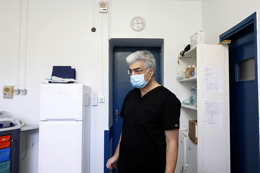 «Φοράς πολλά γάντια και δεν έχεις τόσο καλή αίσθηση της αφής, δεν μπορείς να ακροαστείς καλά πάνω από τη στολή τους πνεύμονες, αλλά το κυριότερο είναι ότι χάνεις την αμεσότητα με τον ασθενή. Δεν βλέπει το πρόσωπό σου, δεν μπορείς να τον ακουμπήσεις, να του πεις όλα θα πάνε καλά», λέει ο κ. Τρόντζας.