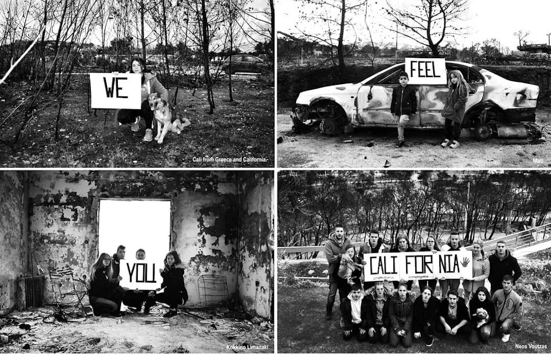 Μαζί με άλλους νέους της περιοχής συμμετείχε και σε δράσεις υποστήριξης των πυροπλήκτων στις μεγάλες δασικές φωτιές στην Καλιφόρνια και στην Αυστραλία. Ηθελαν μέσα από φωτογραφίες τους στη δική τους καμένη γη να τους στείλουν ένα απλό μήνυμα συμπαράστασης, να τους πουν: «Σας καταλαβαίνουμε».