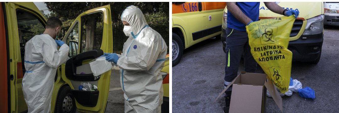 Πίσω στα κεντρικά του ΕΚΑΒ, η απολύμανση του οχήματος των Ζιώγα και Ρομοσιού μόλις έχει ολοκληρωθεί. Παίρνουν ένα κουτί με νέα σετ μέσων ατομικής προστασίας σε περίπτωση που τα χρειαστούν για το επόμενο περιστατικό. «Η μονάδα βορείων. Στη διάθεση κέντρο, διαβιβάστε», λέει ο κ. Ζιώγας στον ασύρματο. Το επόμενο σήμα δεν θα αργήσει.