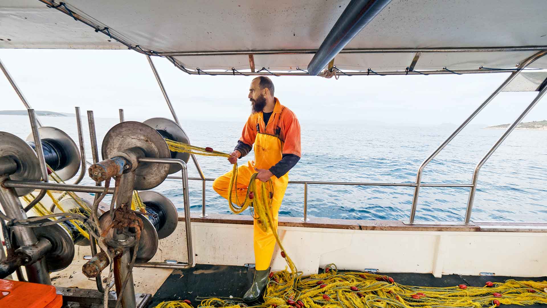 Το ιριδίζον πορτοκαλί λυθρίνι σπαρταράει στα κίτρινα δίχτυα του Γιώργου Αλευρά. Η ώρα είναι 7.45 π.μ. – όπως κάθε πρωί, έτσι και την πρώτη Τρίτη του Δεκεμβρίου ο 38χρονος κ. Αλευράς, ένας εκ των τελευταίων νεαρών ψαράδων στον Αστακό Αιτωλοακαρνανίας, έχει βγει από τη μαρίνα με τον πατέρα του Λάμπρο από τις 6.30 π.μ., την ίδια ώρα που εργαζόμενοι στις ιχθυοκαλλιέργειες των Εχινάδων νήσων επιβιβάζονται στο σκάφος της εταιρείας που θα τους πάει εκεί.