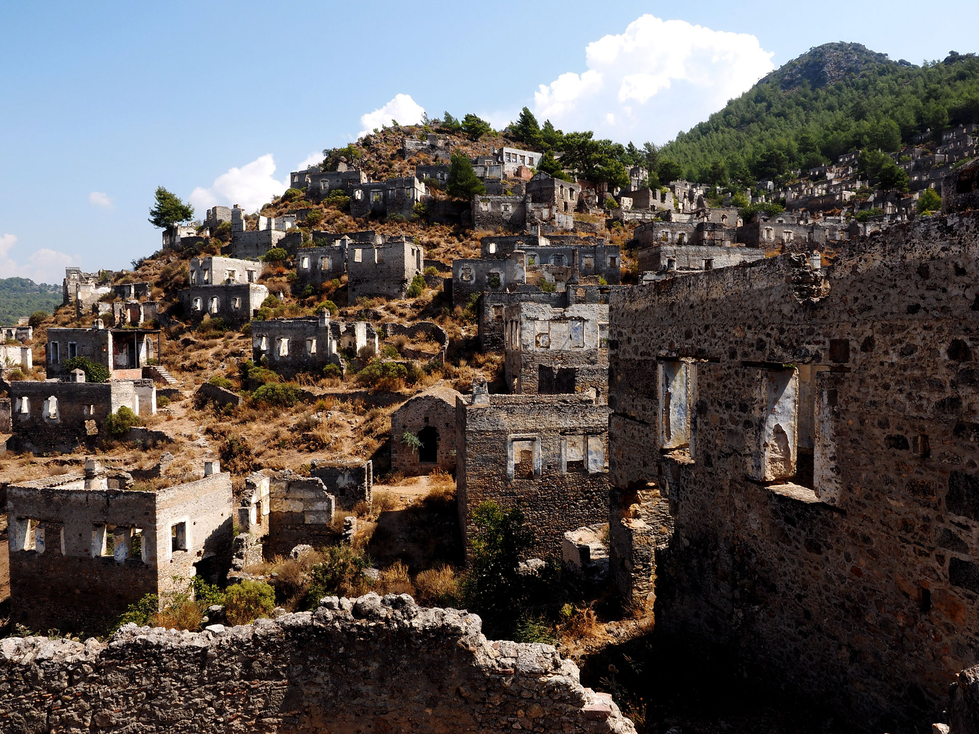 Το μεσημέρι, όταν ο δυνατός καλοκαιρινός ήλιος είναι ψηλά, κάτι παράξενο συμβαίνει στο Λιβίσι. Τα λευκά πλαίσια των παραθύρων λάμπουν και τα σπίτια μοιάζουν και πάλι φωτισμένα. Και τότε, αν σταθείς για λίγο και ακουμπήσεις τις πέτρες θα νιώσεις ότι ακούς και πάλι τα γέλια και τις φωνές μιας ζωντανής πόλης. Μόνο που για το Λιβίσι, το κεφάλαιο «ζωή» έκλεισε το 1922. Μέχρι τότε κατοικούνταν κυρίως από Ελληνες –3.500 σύμφωνα με κάποιες πηγές, 6.500 σύμφωνα με άλλες–, οι οποίοι υποχρεώθηκαν να το εγκαταλείψουν στο πλαίσιο της ανταλλαγής πληθυσμών. Σήμερα παραμένει ερειπωμένο, κρυμμένο καλά πίσω από ένα λόφο μέσα σε ένα πυκνό δάσος, μόλις λίγα χιλιόμετρα από το παραθαλάσσιο τουρκικό θέρετρο Φέτιγιε (Μάκρη), περίπου δύο ώρες με το «δελφίνι» από τη Ρόδο. Την προηγούμενη εβδομάδα, το Λιβίσι βρέθηκε ξαφνικά στην επικαιρότητα. Οι τουρκικές εφημερίδες δημοσίευσαν ανακοίνωση του τουρκικού υπουργείου Πολιτισμού και Τουρισμού, σύμφωνα με την οποία η κυβέρνηση αναζητά επενδυτή για τη μετατροπή μέρους του χωριού –του ενός τρίτου περίπου– σε τουριστική εγκατάσταση. Σύμφωνα με τα δημοσιεύματα, ο επενδυτής θα το εκμεταλλευτεί για 49 χρόνια, αναλαμβάνοντας παράλληλα τη συντήρηση του υπολοίπου. Η «Κ» ταξίδεψε στο Λιβίσι για να καταγράψει τις ιστορίες και τη φωνή όσων θορύβησε η είδηση, τόσο στην Ελλάδα όσο και στην Τουρκία.