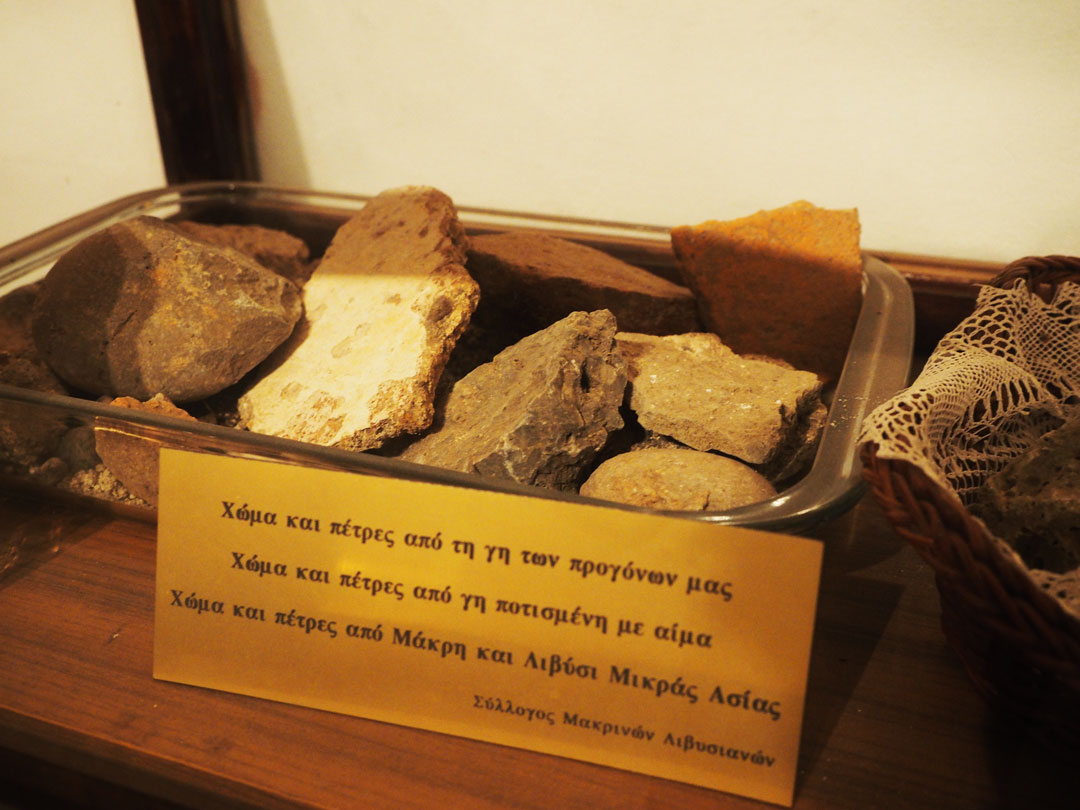 Πεντακόσια χιλιόμετρα μακριά κρατά τις δικές της μνήμες φυλαγμένες σε ένα μικρό κουτί. Το ανοίγει με ευλάβεια και δείχνει το πολύτιμο περιεχόμενό του: χαλίκια από την αυλή του Ταξιάρχη στο Λιβίσι. Τα έβαλε στον τάφο της γιαγιάς της, λέει, όπως της είχε υποσχεθεί. «Εχω κρατήσει μερικά και για τον δικό μου», λέει και τα μάτια της θολώνουν.