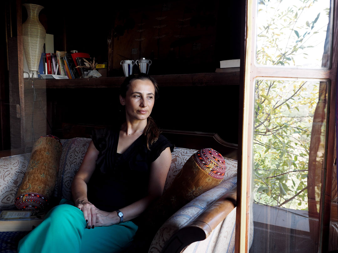 Η Χιλάλ Αλιανάκ σε ένα από τα επτά σπίτια που κατοικούνται σήμερα στο Λιβίσι. Θεωρεί το χωριό μία «ανοιχτή σχολή αρχιτεκτονικής».
