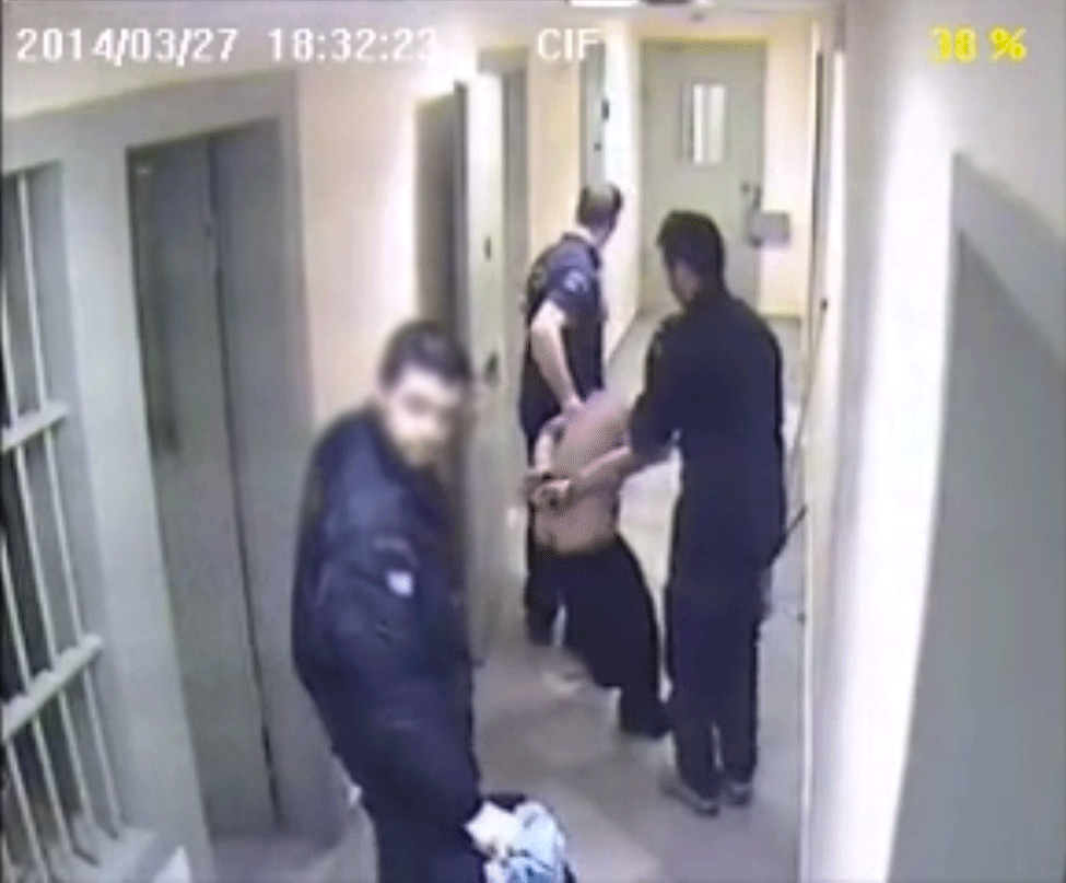 Οι σωφρονιστικοί μπαίνουν ένας, ένας στο κελί «ψυγείο». Σύμφωνα με τις απολογίες τους, σε αυτό το σημείο ξεκινάει ο ξυλοδαρμός του Καρέλι «με γροθιές, κλοτσιές και με χρήση ενός χοντρού σκοινιού».