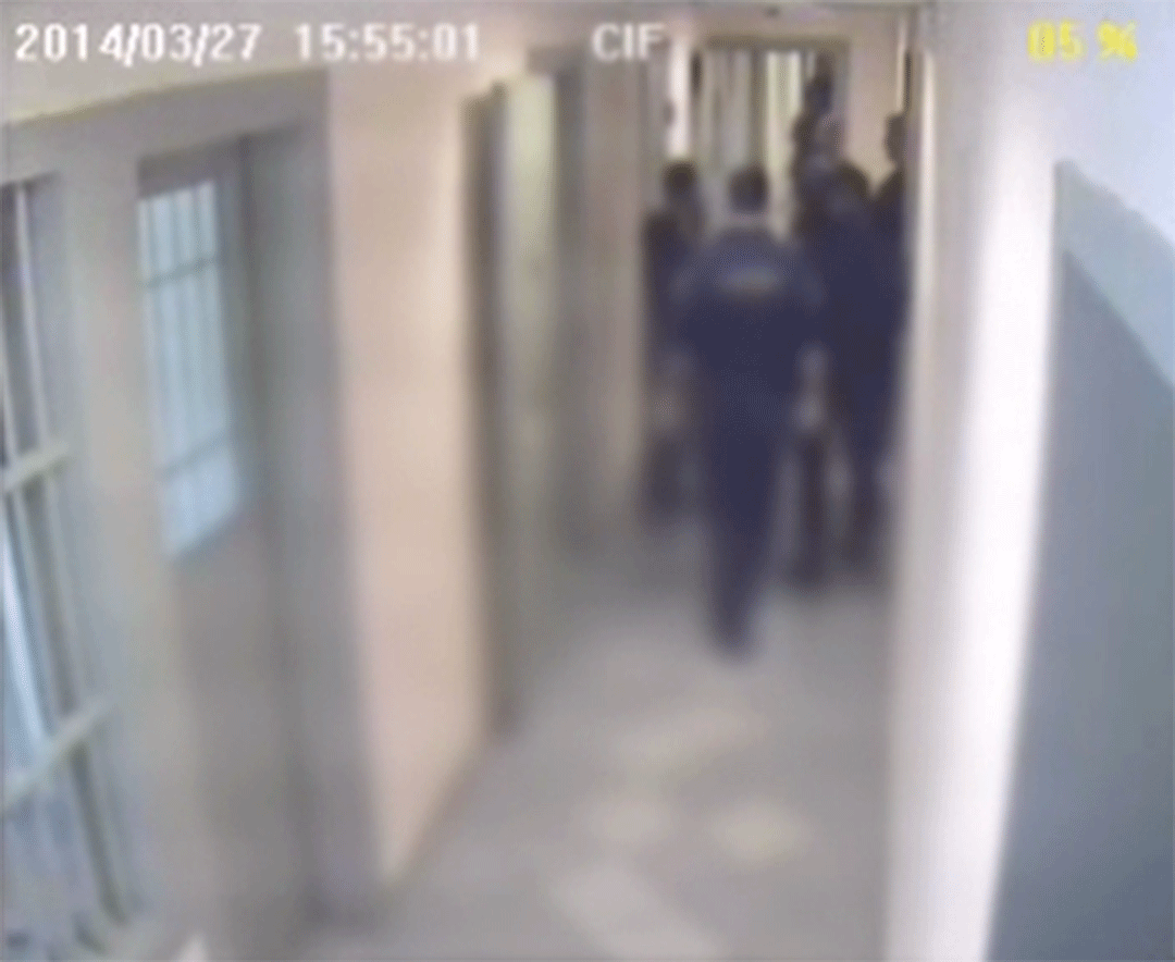 Με το που αποχωρεί ο διευθυντής από τον χώρο της αναμονής στις 15.55, η κάμερα του διαδρόμου «πιάνει» το νεύμα ενός φύλακα προς τους συναδέλφους του.