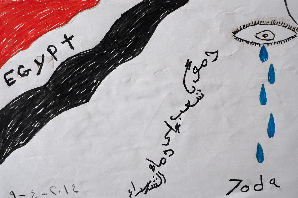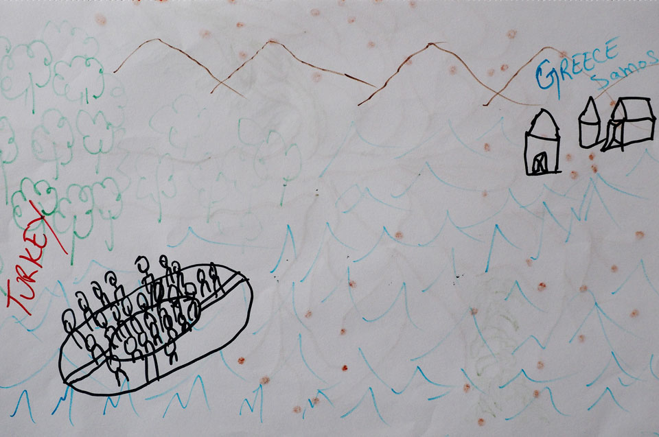 Η κ. Μπισάρα φυλάει ακόμη τις ζωγραφιές που έφτιαξαν τα παιδιά κατά τη διάρκεια της μεταφοράς τους στη δομή.