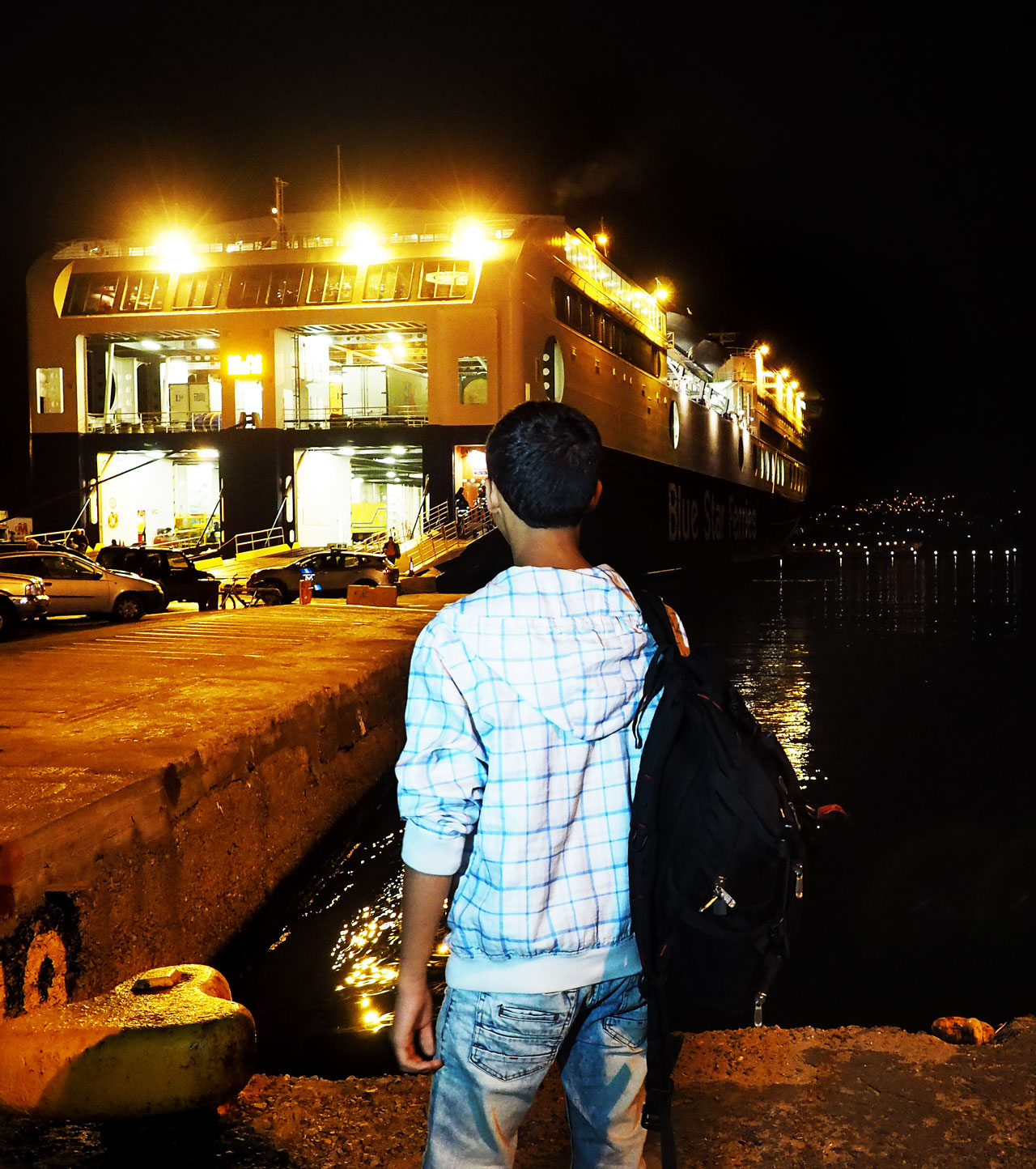 Ο 24χρονος που σήμερα συνοδεύει ανήλικους στο καράβι, πριν από δέκα χρόνια ταξίδευε μόνος. Στο πρόσωπό του κουβαλούσε ακόμα το εφηβικό χνούδι. Πέρασε δέκα ημέρες στο κρατητήριο και τρεις μήνες στην Παγανή Λέσβου, σε μια αποθήκη που πρόχειρα είχε μετατραπεί σε κέντρο κράτησης. «Οι συνθήκες ήταν χάλια. Μια τουαλέτα για 250 άτομα. Δεν είχα ούτε κρεβάτι», λέει.