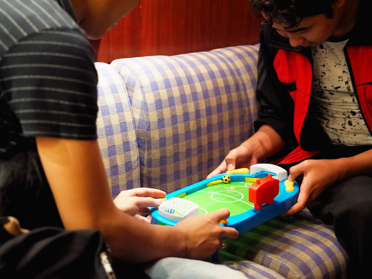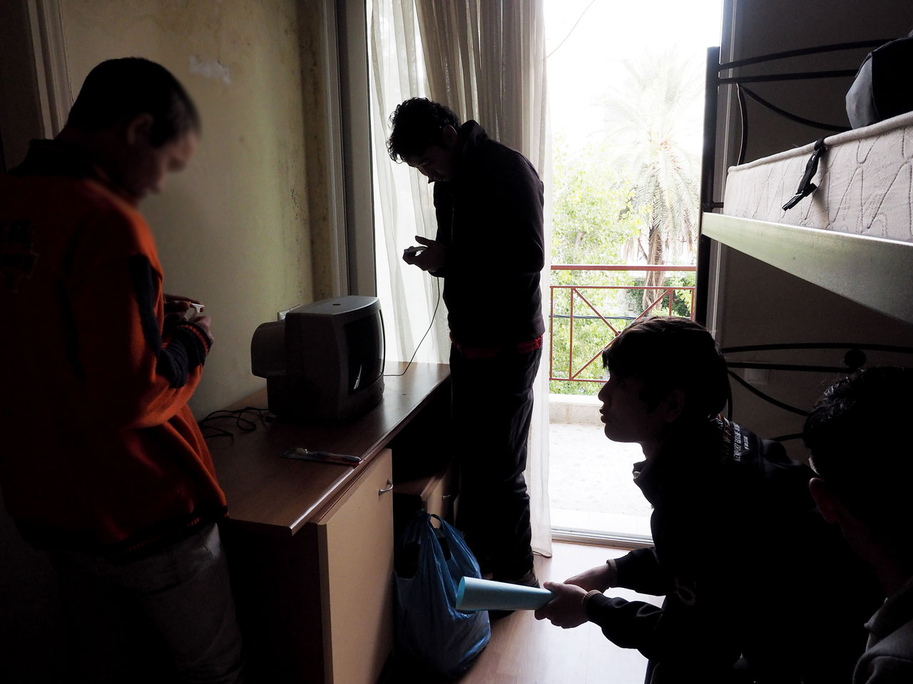 Οι συνοδοί μοιράζουν στους οκτώ εφήβους μπλούζες, κάλτσες και επιτραπέζια παιχνίδια. Τα παιδιά δεν θέλουν να διηγηθούν τις ιστορίες τους όταν τους ρωτάμε πώς έφτασαν στην Ελλάδα. «Δεν νιώθουν έτοιμοι», λέει ο Μουσάι.