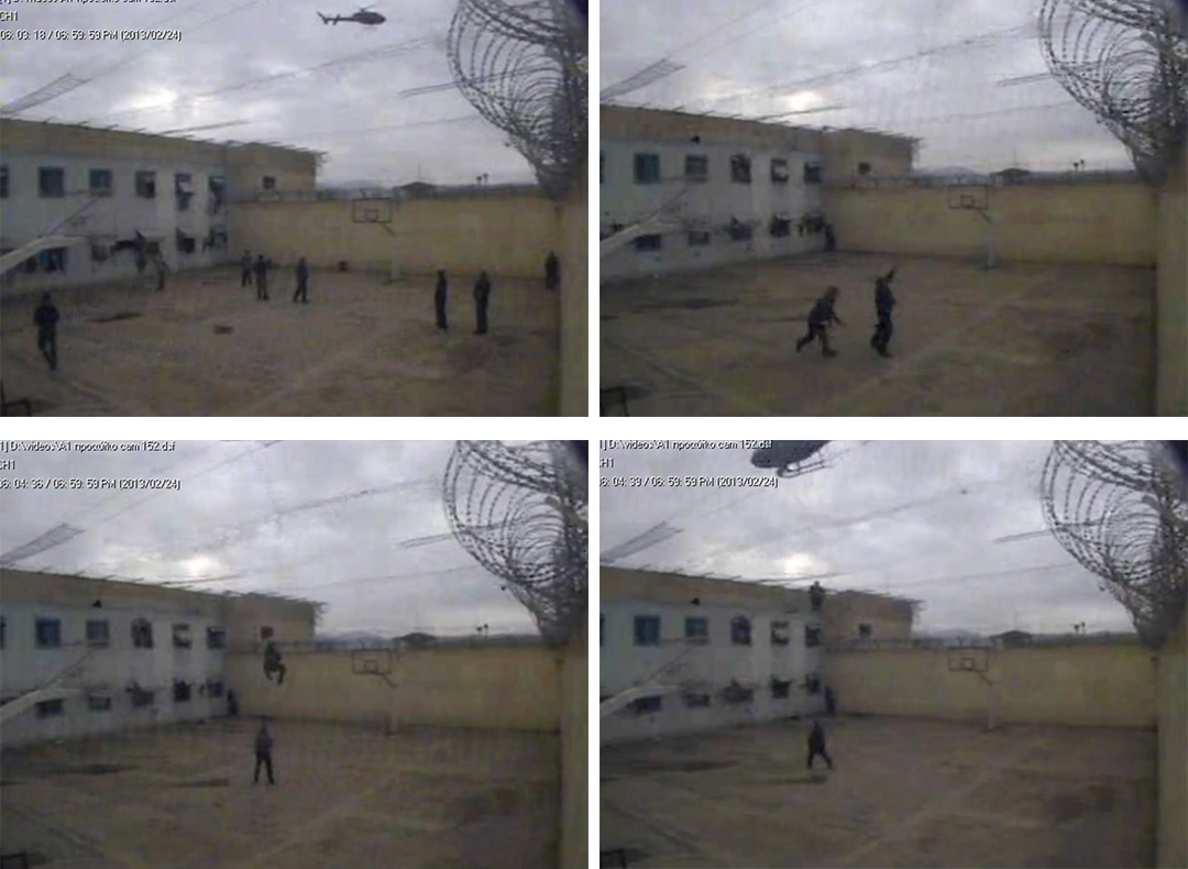 Υλικό από τις κάμερες ασφαλείας της φυλακής, που έχει στη διάθεση της η «Κ», δείχνει πως το ελικόπτερο προσπαθεί επίμονα να αιωρηθεί πάνω από το πλέγμα. Κάποιος πετάει μια ανεμόσκαλα, ο Βλαστός καταφέρνει να γαντζωθεί, προσπαθεί αλλά δεν καταφέρνει να περάσει πάνω από τα σύρματα. Τελικά πέφτει και τραυματίζεται.