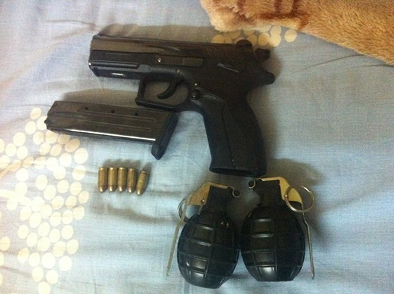 Τα εντοπίζει και χρησιμοποιώντας το ίδιο σκοινί σκαρφαλώνει πίσω στο κελί του. Η πληροφορία που είχε φτάσει τότε στους αρχιφύλακες ήταν πως σε μία από τις μεταμεσονύκτιες βόλτες στο προαύλιο εκτός από ναρκωτικά είχε «μπει» μέσα στη φυλακή και οπλισμός, τον οποίο θα χρησιμοποιούσαν για κάποια απόδραση. Πράγματι μετά δύο μήνες ερευνών βρέθηκαν ένα όπλο, δύο χειροβομβίδες και πέντε σφαίρες.
