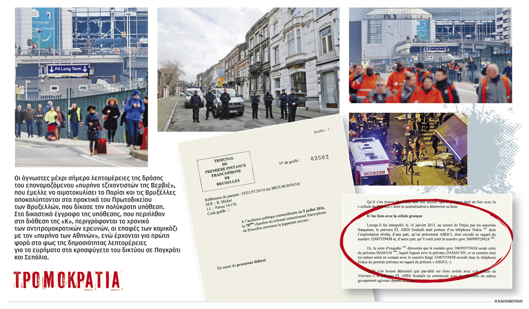 Η πληροφορία για τις κινήσεις του νεαρού υπήρξε η αφετηρία μιας πολύμηνης αντιτρομοκρατικής έρευνας, που αποκάλυψε πυρήνες μελών του Ισλαμικού Κράτους, στο Βέλγιο, τη Συρία και την Ελλάδα. Οι λεπτομέρειες της υπόθεσης, που έμελλε να είναι η πλέον κρίσιμη για τα αιματηρά χτυπήματα στην Ευρώπη τη διετία 2015 - 2016 αποκαλύπτονται σε έγγραφα του Πρωτοδικείου των Βρυξελλών, που δίκασε τα μέλη του πυρήνα τζιχαντιστών της Βελγικής πόλης Βερβιέ. Τα πρακτικά της πολύκροτης δίκης φέρνει στη δημοσιότητα η «Κ».