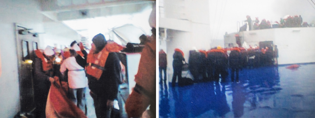 Ένας Ελληνας και ένας Ιταλός από το πλήρωμα προσπαθούσαν να βάλουν σε σειρά τον κόσμο για να επιβιβαστούν στα ελικόπτερα πρώτα τα παιδιά και όσοι είχαν προβλήματα υγείας. Ήταν μια διαδικασία που κράτησε πολλές ώρες, ενώ δεν έλειψαν σύμφωνα με μαρτυρίες και στιγμές πανικού.