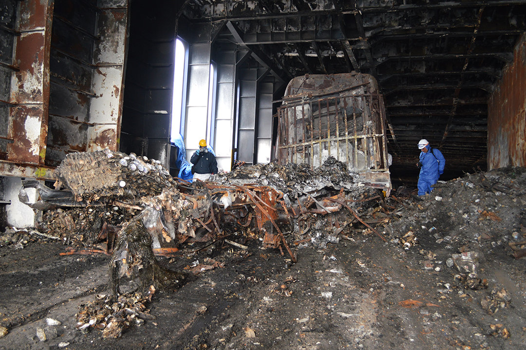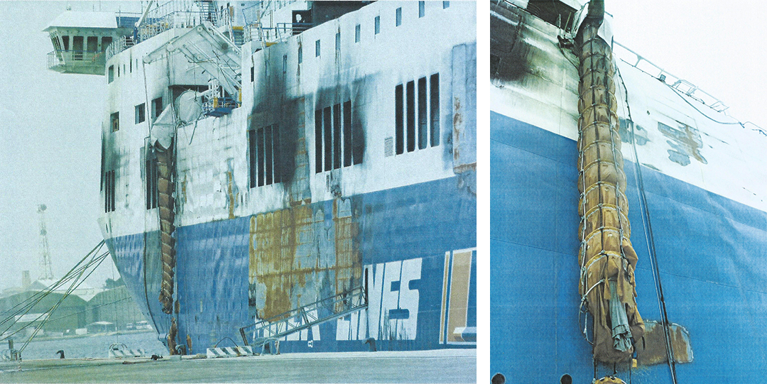Ο δικηγόρος Στέφανο Μπερτόνε διαπίστωσε τη δύναμη της φωτιάς σε αυτοψία που πραγματοποίησε στο πλοίο. Ηταν 12 Ιουνίου 2015 όταν μπόρεσαν να μπουν σε αυτό δικηγόροι διασωθέντων και οικογενειών αγνοουμένων με τους τεχνικούς τους συμβούλους, αλλά και εμπειρογνώμονες της ναυλώτριας και της πλοιοκτήτριας εταιρείας.