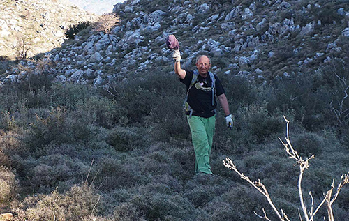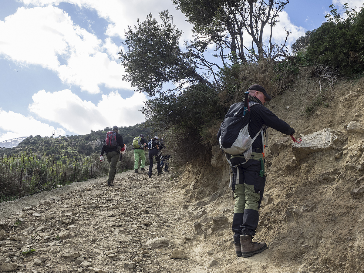 Επιστρέφουμε, λοιπόν, στο ραντεβού μας. Την περασμένη εβδομάδα ο συγγραφέας του βιβλίου βρέθηκε και πάλι στην αγαπημένη του κρητική ενδοχώρα και συνοδεία εθελοντών προχώρησε στον καθαρισμό και στη σήμανση τμημάτων της «κρητικής στράτας». Ανάμεσα σε αυτούς, ο Λιθουανός Audrius Morcunas και η Βελγίδα Alice Jacquet, αμφότεροι μόνιμοι κάτοικοι του νησιού και συνοδοί γκρουπ τουριστών.