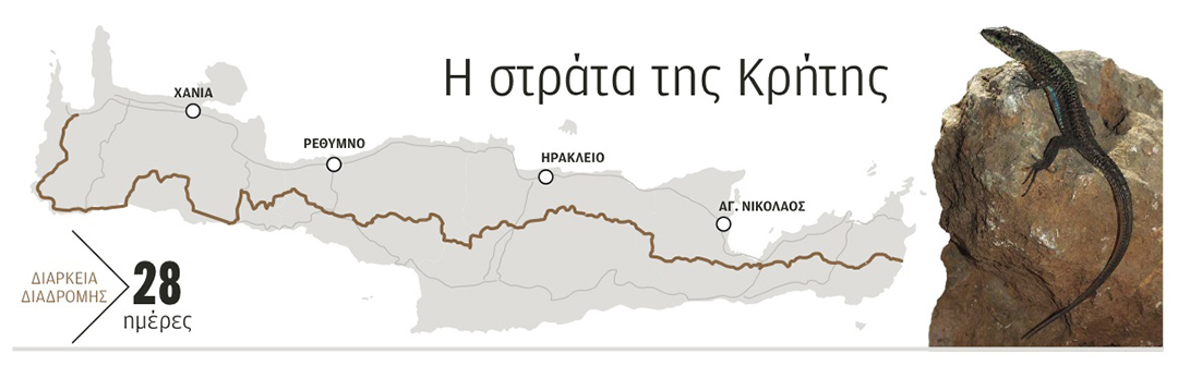 Τι είναι η κρητική στράτα; «Όταν πρωτοήρθα, η Δυτική Κρήτη ήταν καλύτερα οργανωμένη και οι τουρίστες περπατούσαν μόνο στα μονοπάτια της, από Σφακιά έως Ελαφονήσι», διηγείται. «Στο υπόλοιπο νησί όμως τα μονοπάτια ήταν εγκαταλελειμμένα. Ετσι μου ήρθε η ιδέα: να περπατήσω όλη την Κρήτη από την ανατολή προς τη δύση, να δημιουργήσω ένα μονοπάτι για όλους. Η περιοχή είναι πολύ όμορφη, χρειάζεται ένα μονοπάτι μεγάλης απόστασης».