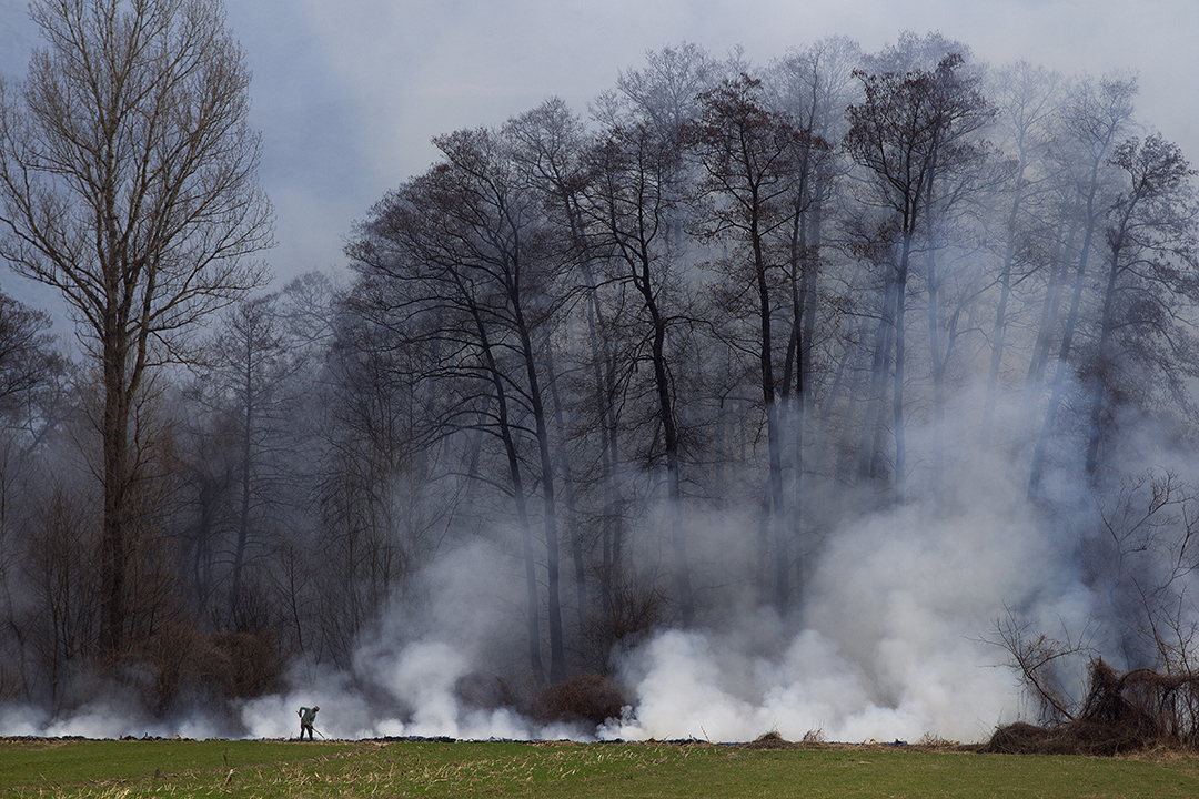 Οδηγούμε 15 χιλιόμετρα έξω από την πόλη. Είναι η εποχή που οι χωρικοί καίνε τα υπολείμματα των αγροτικών καλλιεργειών, τακτική που συμβαίνει και στην Ελλάδα.