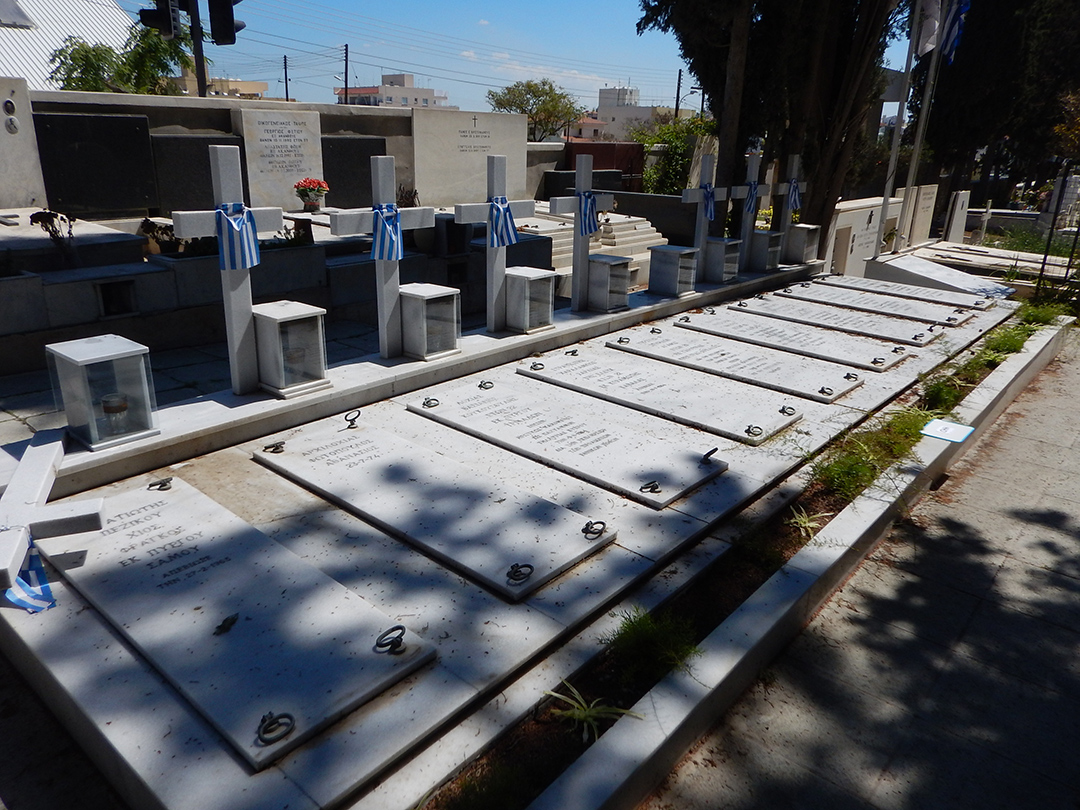 Στο βόρειο τμήμα του κοιμητηρίου Αγίων Κωνσταντίνου και Ελένης τάφηκαν οι έξι Έλληνες πεσόντες του «Φαέθων»: ο σημαιοφόρος Παναγιώτης Χρυσούλλης, οι υποκελευστές Σπυρίδων Αγάθος και Νικόλαος Πανάγος και οι ναύτες Παναγιώτης Θεοδωράτος, Νικόλαος Νιάφας, Νικόλαος Καπαδούκας. Την περίοδο ’79-’81 στο πλαίσιο εκτεταμένων εκταφών στην Κύπρο για επιστροφή λειψάνων πεσόντων άνοιξε και ένας από αυτούς τους τάφους. Τα επόμενα χρόνια ακολούθησαν τουλάχιστον άλλες δύο εκταφές στο ίδιο σημείο.