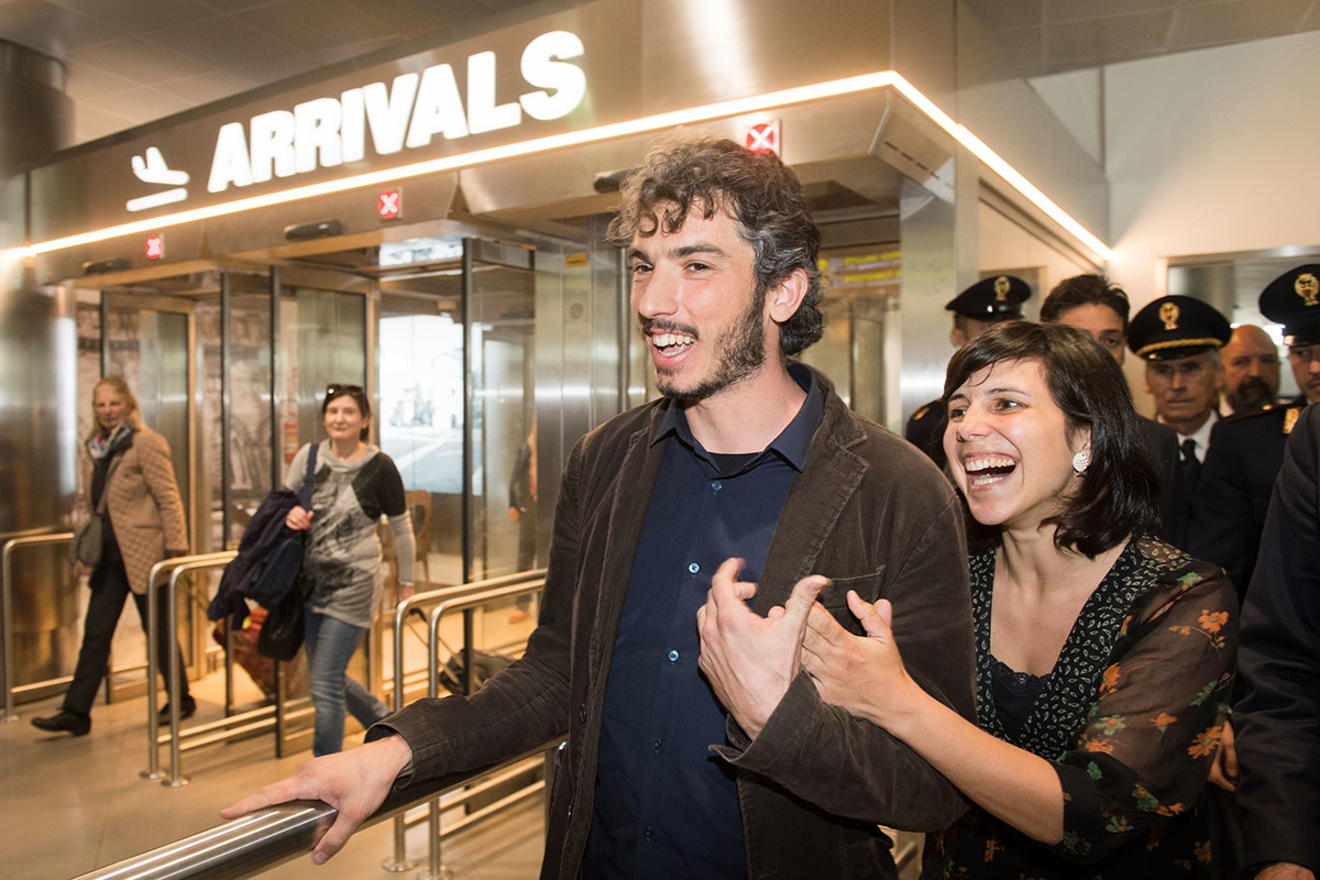 Την επομένη, όμως, τον ξύπνησαν και του ανακοίνωσαν πως θα απελαθεί. Ούτε όμως τότε τον άφησαν να τηλεφωνήσει στους συγγενείς του. Επέμειναν να πετάξει στην Ελλάδα και όχι στην Ιταλία, «προφανώς για να αποφύγουν τη μεγάλη δημοσιότητα» θεωρεί ο Γκαμπριέλε. Η Αλεξάνδρα όμως βρισκόταν ήδη στη Ρώμη, οπότε δεν είχαν επιχειρήματα. Λίγο πριν μπει στην πτήση, του έδωσαν την τσάντα του. Τα πράγματά του ήταν φαινομενικά ανέπαφα (έλειπε μόνο ένας νυχοκόπτης και 4 μπαταρίες). Στην Ιταλία τον περίμενε η Αλεξάνδρα, δεκάδες δημοσιογράφοι και ένα πιάτο φαγητό (προσούτο κρούντο, το οποίο καταβρόχθισε).
