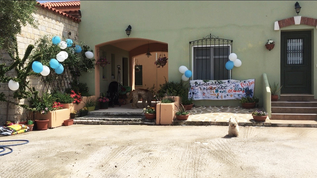 Η οικογένεια της γυναίκας του είχε ξεκινήσει από νωρίς να μαγειρεύει για το γλέντι της επιστροφής του, τα παιδιά τους, η Νεφέλη τεσσάρων και ο Λεβάντε δύο ετών, είχαν φτιάξει με τη βοήθεια της γιαγιάς τους γιρλάντες από λουλούδια, είχαν κρεμάσει από τις ελιές αμέτρητα μπαλόνια και είχαν ζωγραφίσει ένα τεράστιο πανό για να τον υποδεχθούν.