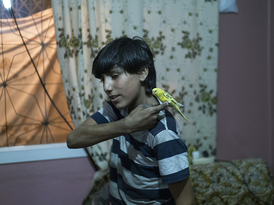 Είναι η μόνη του διέξοδος από τη ρουτίνα της εργασίας. Ο Ομάρ ανοίγει το πορτάκι μπροστά μας. Το παπαγαλάκι πεταρίζει στο δωμάτιο τρομαγμένο από την απρόσμενη αίσθηση ελευθερίας, μέχρι το αγόρι να το πιάσει και να το βάλει πάλι μέσα στο κλουβί.