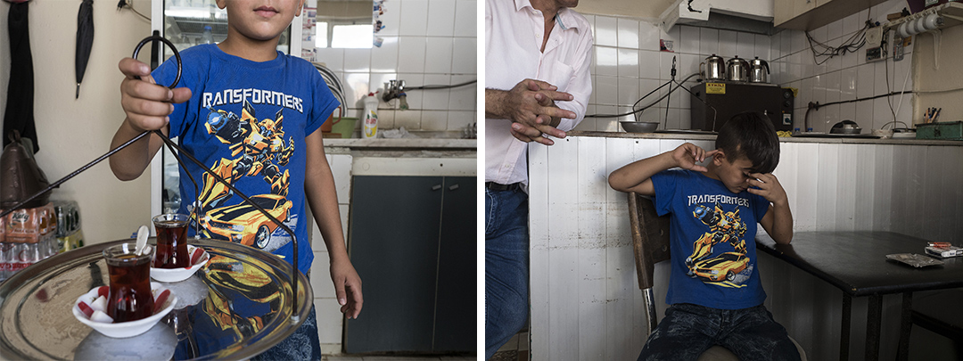 Ο 10χρονος Σαφουάν γνωρίζει καλά αυτά τα μέρη. Μικροκαμωμένος και σβέλτος, γυρίζει με έναν τσίγκινο δίσκο όλα τα μαγαζιά από το πρωί μέχρι το σούρουπο. Όταν τον συναντάμε στον Τούρκο καφετζή για τον οποίο εργάζεται, είναι πια μεσημέρι, και ο μικρός παλεύει να κρατήσει ανοικτά τα βλέφαρά του. Φοράει μια μπλε μπλούζα με στάμπα της σειράς κινουμένων σχεδίων Transformers.