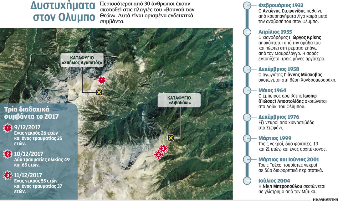 Τα τρία διαδοχικά συμβάντα με δύο νεκρούς και τέσσερις τραυματίες στον Ολυμπο, οι κίνδυνοι και οι παράτολμες διασώσεις.