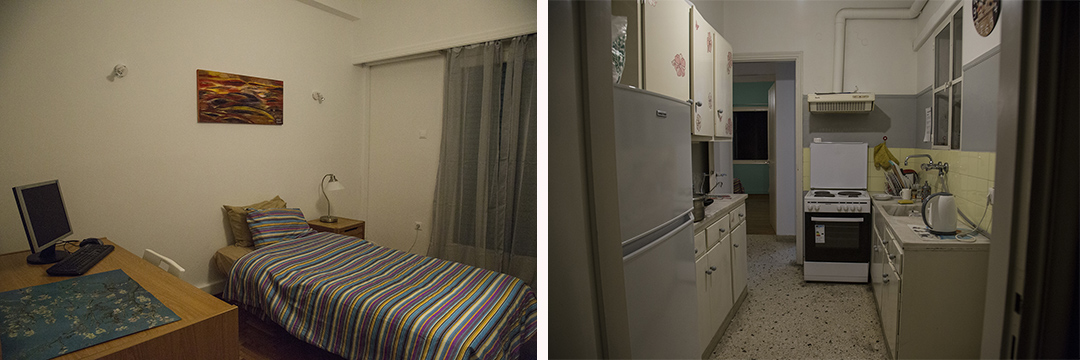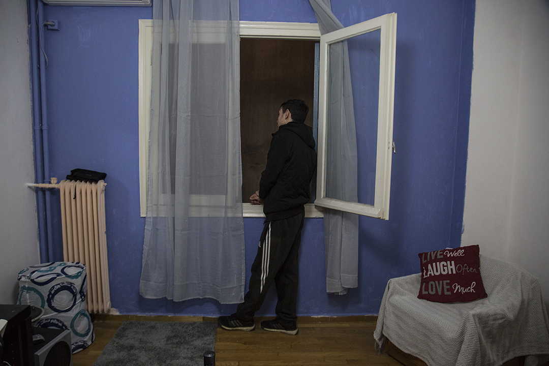 Τα προσωπικά του αντικείμενα είναι μετρημένα: Μια πλαστική υδρόγειος, ένα τουμπερλέκι, δύο φωτογραφίες από τα αδέρφια του και ένα λευκό αρκουδάκι ακουμπισμένο στο κρεβάτι – δώρο της κοπέλας του. Από το παράθυρο μπορεί να μην μπαίνει πολύ φως και το βλέμμα να σκοντάφτει στην πίσω όψη της γειτονικής πολυκατοικίας. Για τον νεαρό φιλοξενούμενο, όμως, αυτό το δωμάτιο προσφέρει μια πολύτιμη αίσθηση ελευθερίας.