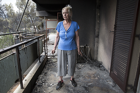 Μία ημέρα μετά τη φωτιά στο Μάτι Αττικής, οι τοίχοι στο διαμέρισμα της Τζούλιας Ιωαννίδου είναι ακόμη πυρωμένοι. Νιώθεις τη ζέστη στο πρόσωπο. «Άγγιξε τον τοίχο, καίει», λέει. «Οι διπλανοί μας καταστράφηκαν ολοσχερώς, σα να τους χτύπησε κομπρεσέρ», προσθέτει και εξηγεί την παράξενη πορεία της φωτιάς.