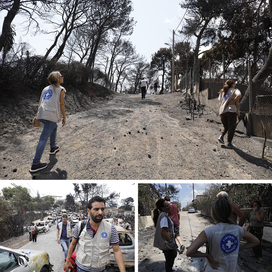 Μέχρι και την περασμένη Τετάρτη, οι Γιατροί του Κόσμου είχαν δει συνολικά 271 ανθρώπους. Εξ αυτών οι 69 έλαβαν ψυχοκοινωνική στήριξη και οι 27 δέχθηκαν αμιγώς τη βοήθεια ψυχολόγου. Μεταξύ αυτών που είδαν στο Μάτι ήταν και μια ηλικιωμένη με κινητικά προβλήματα που έξι ημέρες μετά την πυρκαγιά παρέμενε στο σπίτι της χωρίς εντοπισμό. Δεν είχε λάβει καμία βοήθεια μέχρι τότε από γιατρό ή ψυχολόγο και το ένα τρίτο της οικίας της είχε καταστραφεί από τη φωτιά. Τελικά μεταφέρθηκε στο Κέντρο Υγείας. Το πρόγραμμα ψυχοκοινωνικής στήριξης της οργάνωσης θα συνεχιστεί μέχρι τα τέλη Οκτωβρίου.