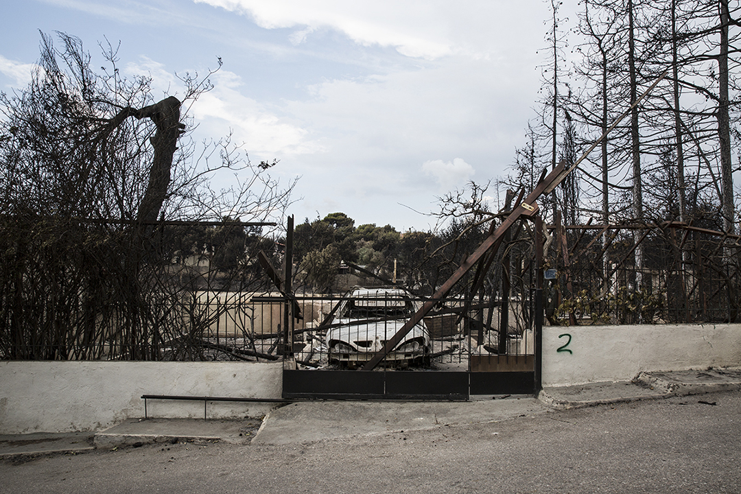 Αυτές τις ημέρες ο αέρας παραμένει πηχτός στο Μάτι. Μπορεί τα καμένα αυτοκίνητα να μαζεύτηκαν, εναερίτες να σκαρφαλώνουν σε στύλους της ΔΕΗ και υλοτόμοι να απομακρύνουν –με αργούς ρυθμούς– τα αποκαΐδια, τα σημάδια της καταστροφής, όμως, είναι ακόμη εμφανή ολόγυρα.
