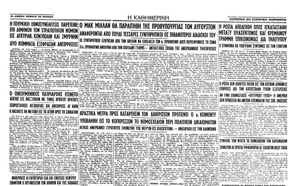 Εν τέλει, η συμφωνία υπογράφηκε στις 20 Ιουνίου. «Μεταδίδεται εκ Γενεύης ότι υπεγράφη σήμερον εις το Μέγαρον των Εθνών συμφωνία εγκαταστάσεως αμέσου τηλετυπικής συνδέσεως μεταξύ Μόσχας και Ουασιγκτώνος. Η συμφωνία υπεγράφη υπό των αντιπροσώπων της διασκέψεως αφοπλισμού κ.κ. Τσαράπκιν (Σ. Ένωσις) και Στελ (Ηνωμ. Πολιτείαι)», ανακοίνωνε η «Κ». Την ίδια ώρα ο πρόεδρος Κένεντι δήλωνε από το Τσάρλεστον της Δυτικής Βιρτζίνια: «Η συμφωνία περί απ’ αυθείας τηλετυπικής συνδέσεως μεταξύ Ουασιγκτώνος και Μόσχας είναι πρώτον βήμα, το οποίον, ως ελπίζομεν, θα έχη ως συνέχειαν και άλλα σημαντικώτερα μέτρα. Από της πλευράς μας θα πράξομεν το κατά δύναμιν διά να συμβή αυτό. Εις μιαν εποχήν, κατά την οποίαν τα γεγονότα εξελίσσονται ταχέως, έχει καταστή αναγκαίον ένα ταχύ και ασφαλές μέσον επικοινωνίας. Αι Κυβερνήσεις των Ην. Πολιτειών και της Σ. Ενώσεως, υπογράψασαι σήμερον την συμφωνίαν αυτήν, έλαβον το πρώτον μέτρον διά την μείωσιν του κινδύνου εκρήξεως πολέμου εκ τυχαίου περιστατικού ή λανθασμένου υπολογισμού».