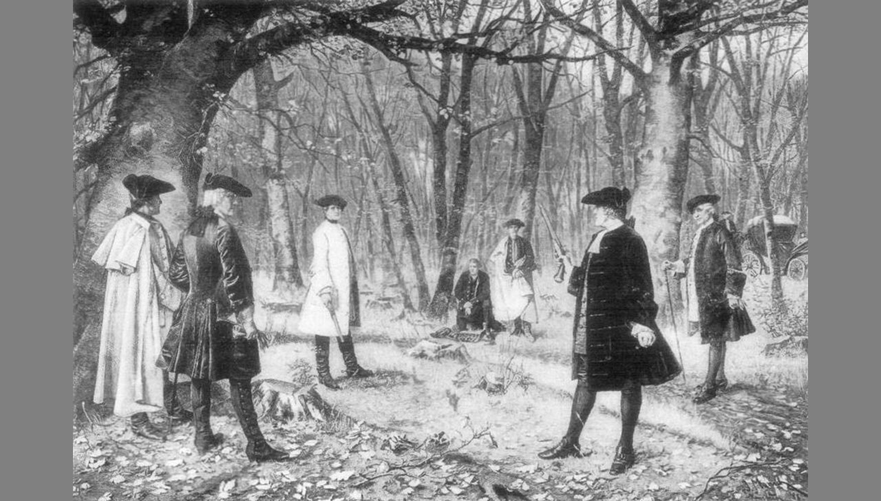 Νωρίς το πρωί της 11ης Ιουλίου 1804, δύο βάρκες αναχωρούν από το Μανχάταν και διασχίζουν τον ποταμό Χάντσον. Προορισμός τους ήταν το Γουίχακεν του Νιου Τζέρσεϊ, μέρος που χρησιμοποιούνταν συχνά για μονομαχίες. Εκείνη την εποχή, το φαινόμενο των μονομαχιών ήταν τόσο εκτεταμένο στην Αμερική (και αλλού), ώστε ορισμένες πολιτείες είχαν θέσει αυτές τις συγκρούσεις εκτός νόμου. Δύο από αυτές ήταν η Νέα Υόρκη και το Νιου Τζέρσεϊ – αν και η τελευταία ήταν πολύ πιο ελαστική στην εφαρμογή του συγκεκριμένου νόμου (γι’ αυτό άλλωστε το Γουίχακεν ήταν δημοφιλής τοποθεσία για μονομαχίες).