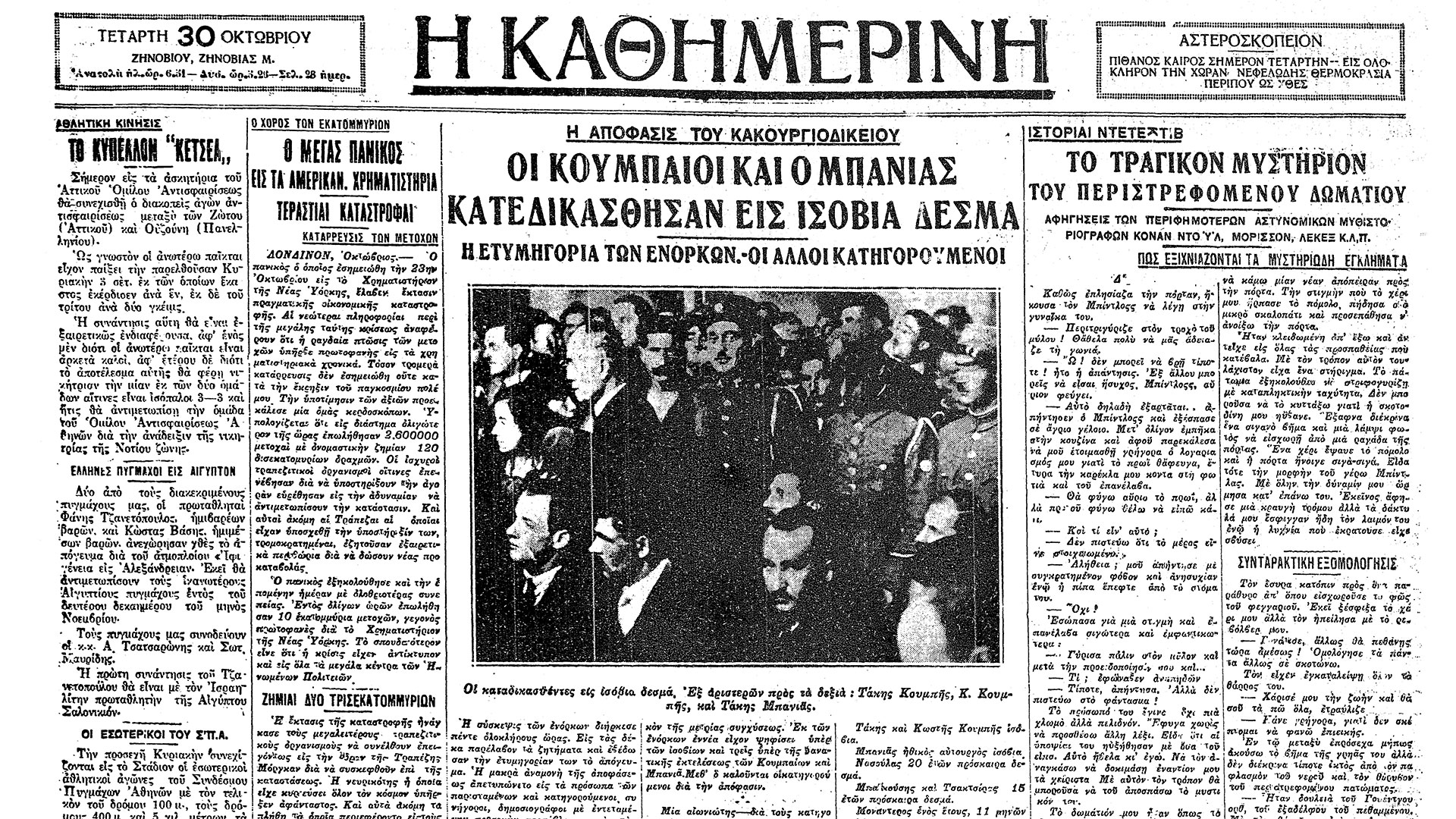 Το Κραχ των τελευταίων ημερών του Οκτωβρίου του 1929 σχολιάστηκε από τους συντάκτες της «Καθημερινής». Στις 30 Οκτωβρίου η εφημερίδα έγραψε: «Ο πανικός ο οποίος εσημειώθη την 23ην Οκτωβρίου εις το Χρηματιστήριον της Νέας Υόρκης, έλαβεν έκτασιν πραγματικής οικονομικής καταστροφής. […] Τόσον τρομερά κατάρρευσις δεν εσημειώθη ούτε κατά την έκρηξιν του παγκοσμίου πολέμου. Την υποτίμησιν των αξιών προεκάλεσε μία ομάς κερδοσκόπων. Υπολογίζεται ότι εις διάστημα ολιγώτερον της ώρας επωλήθησαν 2.600.000 μετοχαί με ονομαστικήν ζημίαν 120 δισεκατομυρίων δραχμών». Συνεχίζοντας, ανέφερε ότι «ο πανικός εξηκολούθησε και την επομένην ημέραν με ολοθριοτέρας συνεπείας. Εντός ολίγων ωρών επωλήθησαν 10 εκατομμύρια μετοχών, γεγονός πρωτοφανές δια το Χρηματιστήριον της Νέας Υόρκης».