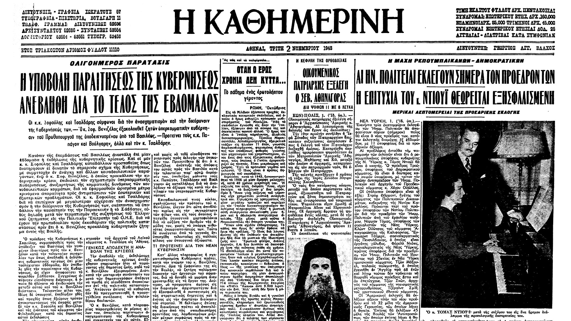 Τα πρώτα αποτελέσματα έδειχναν ότι ο Νεοϋορκέζος Ντιούι κατά πάσα πιθανότητα θα κέρδιζε τον Τρούμαν. Η εντύπωση αυτή, όμως, ανατράπηκε στη συνέχεια. «Η προσωπική νίκη του κ. Χάρρυ Τρούμαν απετέλεσεν ίσως το “εκπληκτικώτερον πολιτικόν γεγονός” εξ όσων εσημειώθησαν από δεκαετηρίδων εις την ζωήν των Ηνωμ. Πολιτειών. Ουδείς ήλπιζεν ότι ο επί κεφαλής του Δημοκρατικού Κόμματος, μετά την έκλειψιν της μεγάλης φυσιογνωμίας του Φραγκλίνου Ρούζβελτ και αφού το κόμμα τούτο παρέμεινε συνεχώς εις την αρχήν από του 1932 με την αναπόφευκτον φθοράν την οποίαν επέτεινεν ο δεύτερος Παγκόσμιος Πόλεμος θα ηδύνατο να καταγάγη νίκην τοιαύτης ολκής», ανέφερε η «Καθημερινή» στις 4 Νοεμβρίου, όταν ολοκληρώθηκε η καταμέτρηση των ψήφων. Όπως τόνισε στο πρωτοσέλιδό της, «ο κ. Τρούμαν δεν ηκολούθησε την τύχην του κ. Ουίνστον Τσώρτσιλ και άλλων πολεμικών ηγετών. Πολλοί ψυχολογικοί παράγοντες, οφειλόμενοι ιδίως εις την φιλεργατικήν του πολιτικήν και τα ανθρωπιστικά του αισθήματα, επέδρασαν αποφασιστικώς επί του αποτελέσματος της χθεσινής εκλογής».